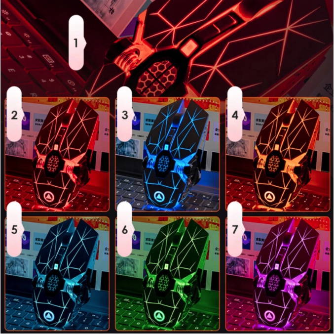 A7 – Беспроводная мышь – Тихая игровая мышь без щелчков со встроенным аккумулятором и светодиодной подсветкой