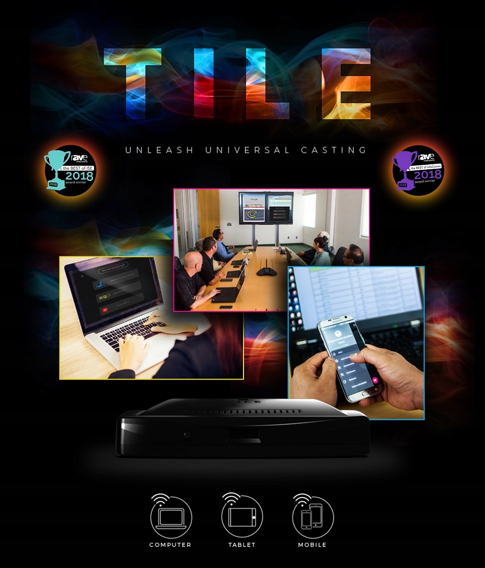 TILE рекомендуется для использования в конференц-залах, учебных помещениях, рекламных и маркетинговых агентствах и многих других. Упрощает процесс беспроводного подключения нескольких пользователей к существующей системе отображения. Пользователям больше не нужно использовать проводное соединение и настраивать экран своего ноутбука — просто выберите контент, который они хотят показать группе, и начните транслировать его на экран. Поскольку одновременно может отображаться до 5 различных окон, несколько пользователей могут одновременно обмениваться идеями и презентациями, что приводит к эффективным и динамичным обсуждениям.