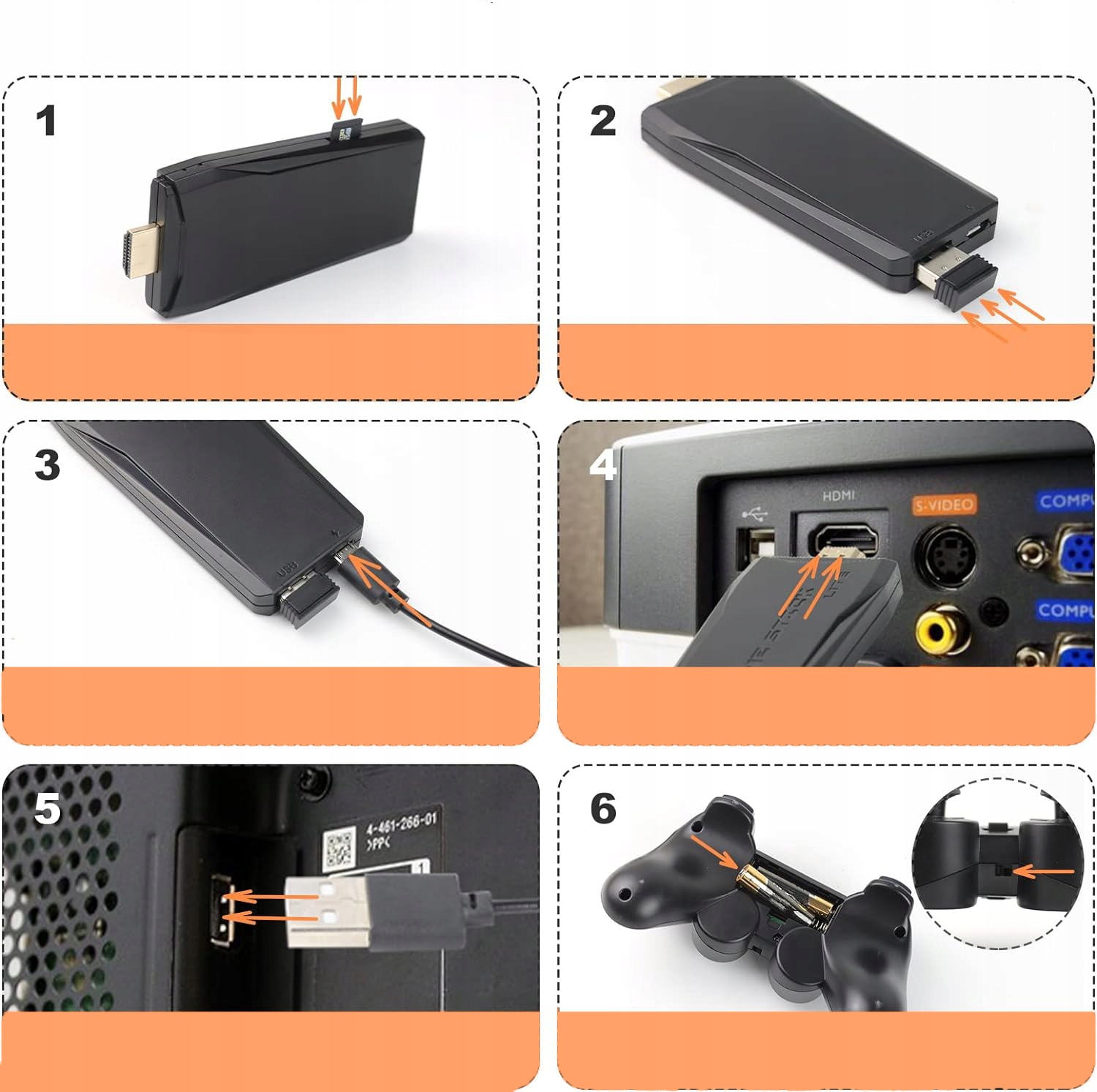 ⭐ 【Простота в эксплуатации】Просто подключите Retro Game Stick к источнику питания, вставьте встроенную TF-карту для игрового контента, затем подключите ее к телевизору и установите в качестве источника ТВ HD-канал для отображения экрана со списком игр на телевизоре.