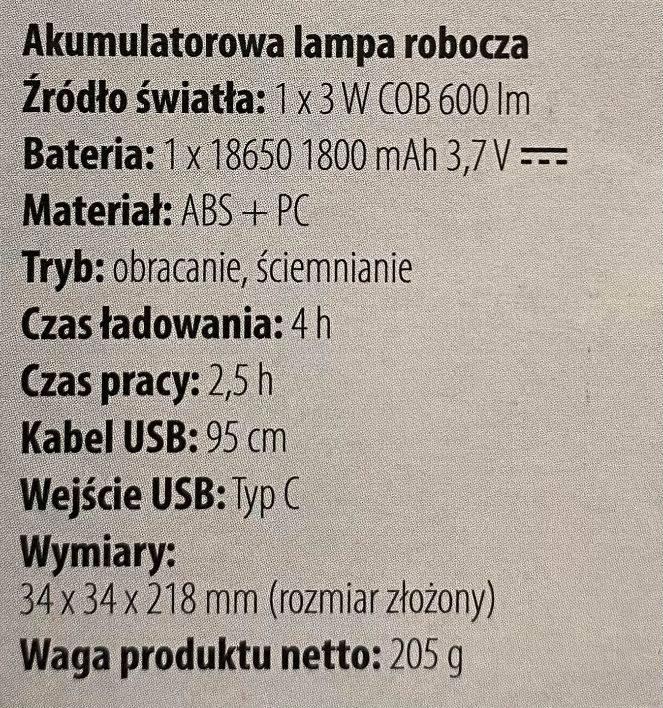Можно использовать функциональную лампу для мастерской. на ферме дома и в профессиональных мастерских. Световой поток 600 лм гарантирует эффективную и комфортную работу. Благодаря ручке можно удобно регулировать интенсивность света. Лампу можно прикрепить с помощью магнита снизу или повесить на крючок. Имеет нескользящую ручку и корпус из АБС-пластика. Лампа имеет встроенный USB тип C - кабель в комплекте.