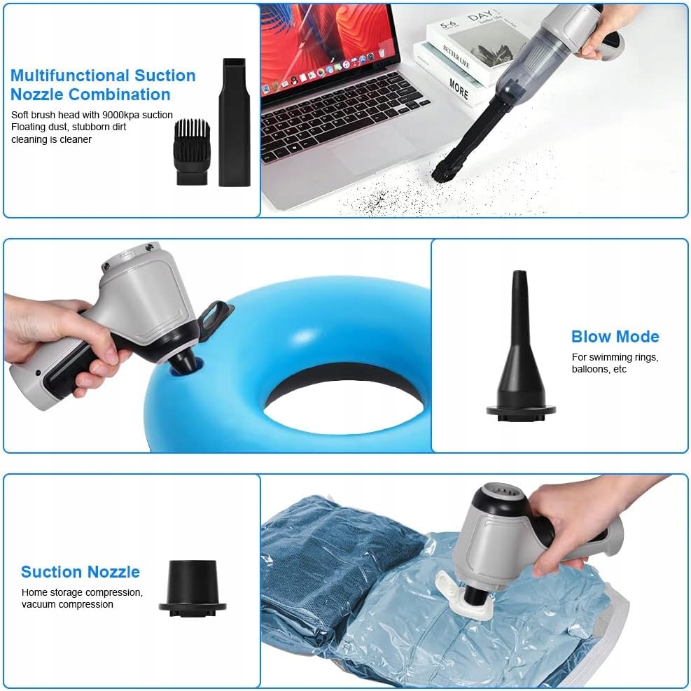 - влажный и сухой - всасывание и функция выдувания USB - Встроенный в 2 × 2000 мАч литийной батареи будет заряжена в течение 3 часов с любым USB -портом, обеспечивая 20-30 минут беспроводной очистки