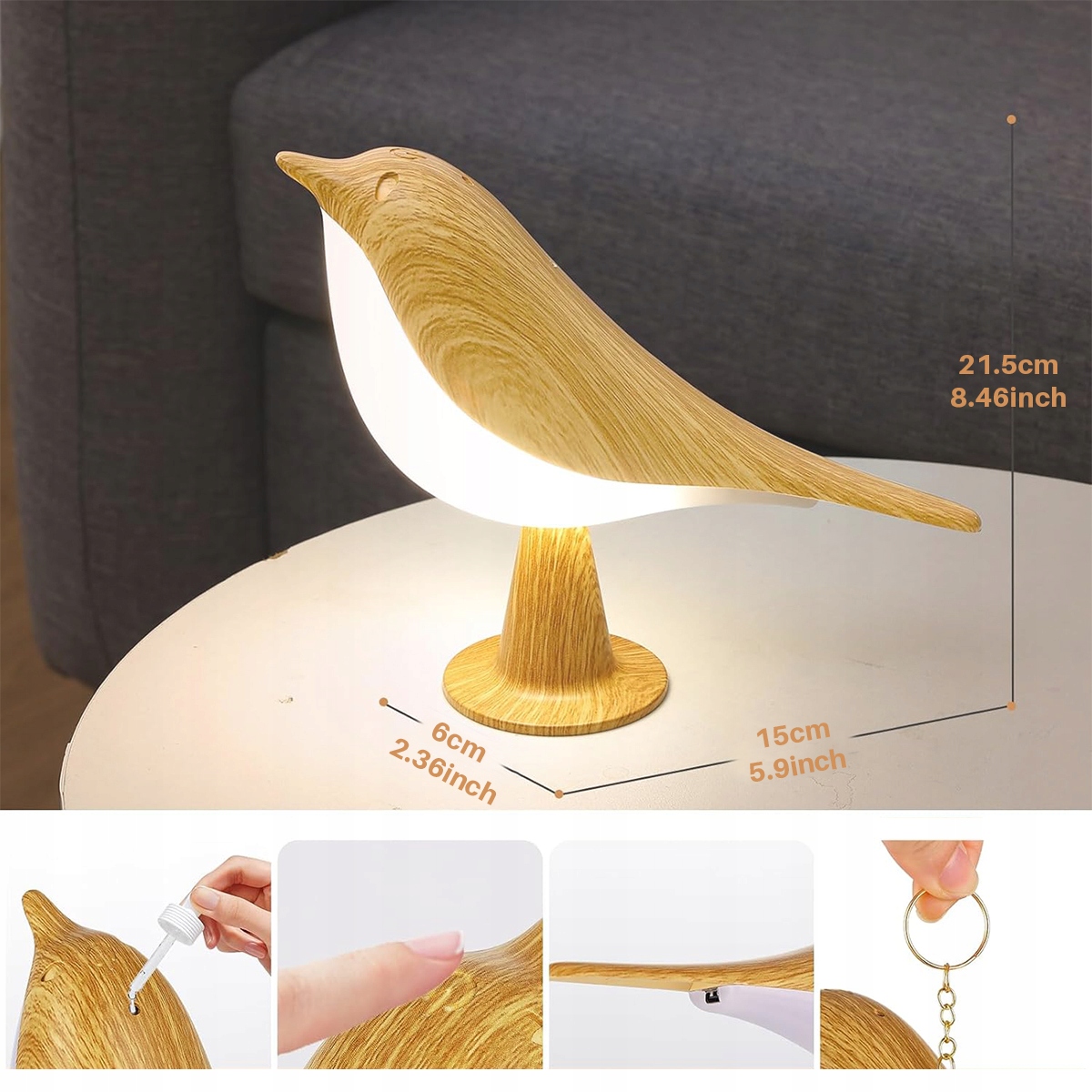 Прикоснитесь к верхней части лампы в форме птицы, чтобы отрегулировать цветовую температуру: белый свет для чистого и яркого освещения, нейтральный свет для комфортного чтения и теплый свет для приятной атмосферы сна. Длительное нажатие регулирует яркость.