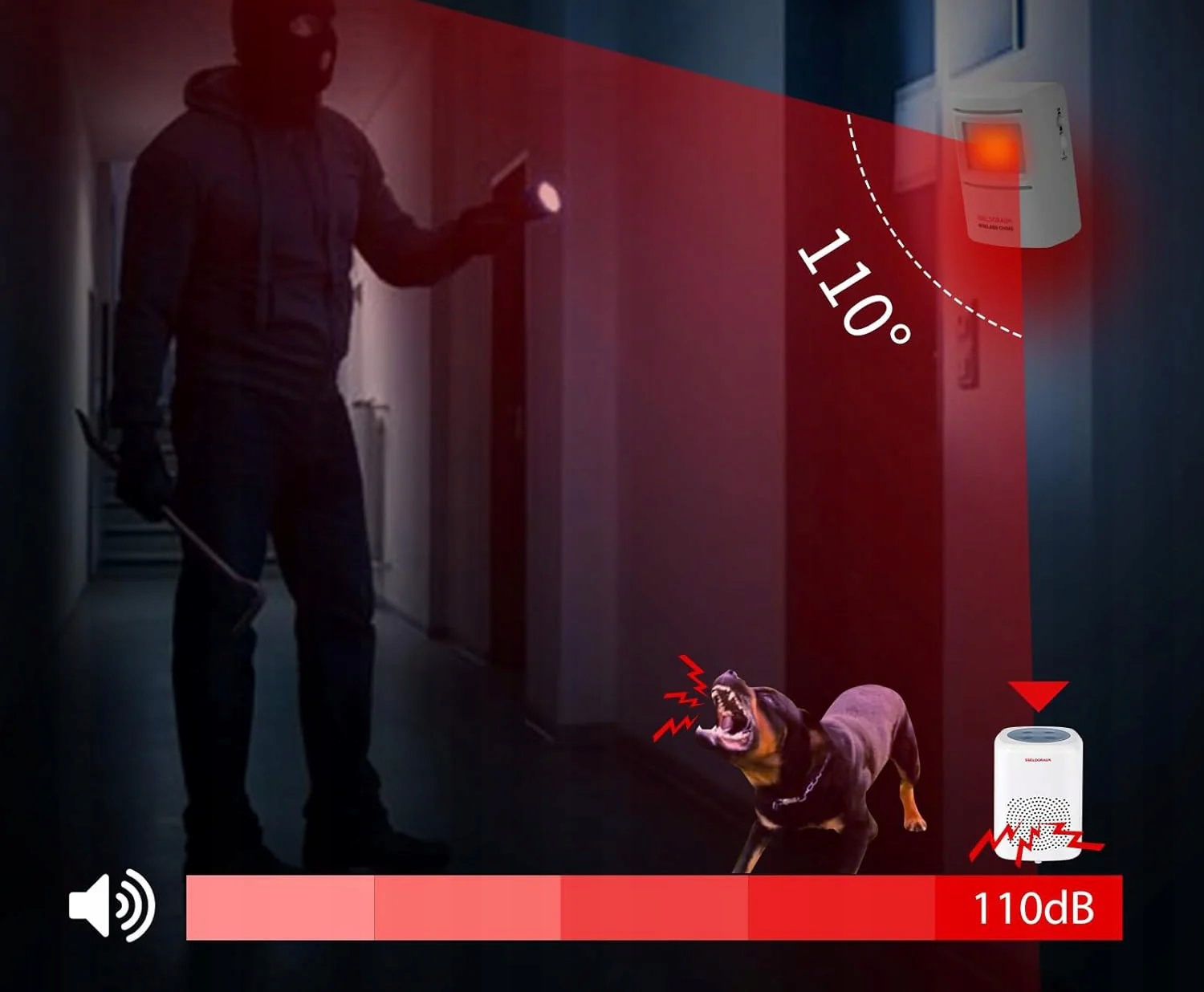Эта сигнализация — ваша собственная сторожевая собака для защиты вашей семьи, в случае попытки взлома в качестве замены или дополнения к сторожевой собаке.