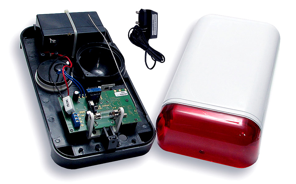 Беспроводная сирена Elmes Elektronik WSS представляет собой акустико-оптическое устройство обнаружения взлома и нападения, предназначенное для использования вне охраняемого объекта. Сигнализатор представляет собой микропроцессорное устройство и имеет передающую и приемную систему для беспроводной связи с ПКП СВ32. Он также может работать с любой системой сигнализации, используя специальный модуль управления WSM. Конструкция сирены позволяет питать ее от входящего в комплект блока питания или от линии постоянного тока 13,8В проводной сигнализации. Этот блок питания позволяет заряжать аккумулятор, который является основным источником энергии сигнализации и обеспечивает работу сирены даже при отключении сетевого питания. Помимо звуковых и оптических сигналов тревоги, сирена также генерирует сигналы включения и выключения наблюдения, что полезно при постановке и снятии системы сигнализации с охраны с помощью радиопульта. Система противодиверсионной защиты сирены фиксирует вспенивание, отсоединение от основания и снятие крышки корпуса. В каждом из этих случаев сирена сразу начинает тревожить и оповещает ПКП по радио. Сигнализатор также передает информацию об аварийных состояниях (например, отсутствие сетевого напряжения), которые регистрируются и сигнализируются в ПКП.