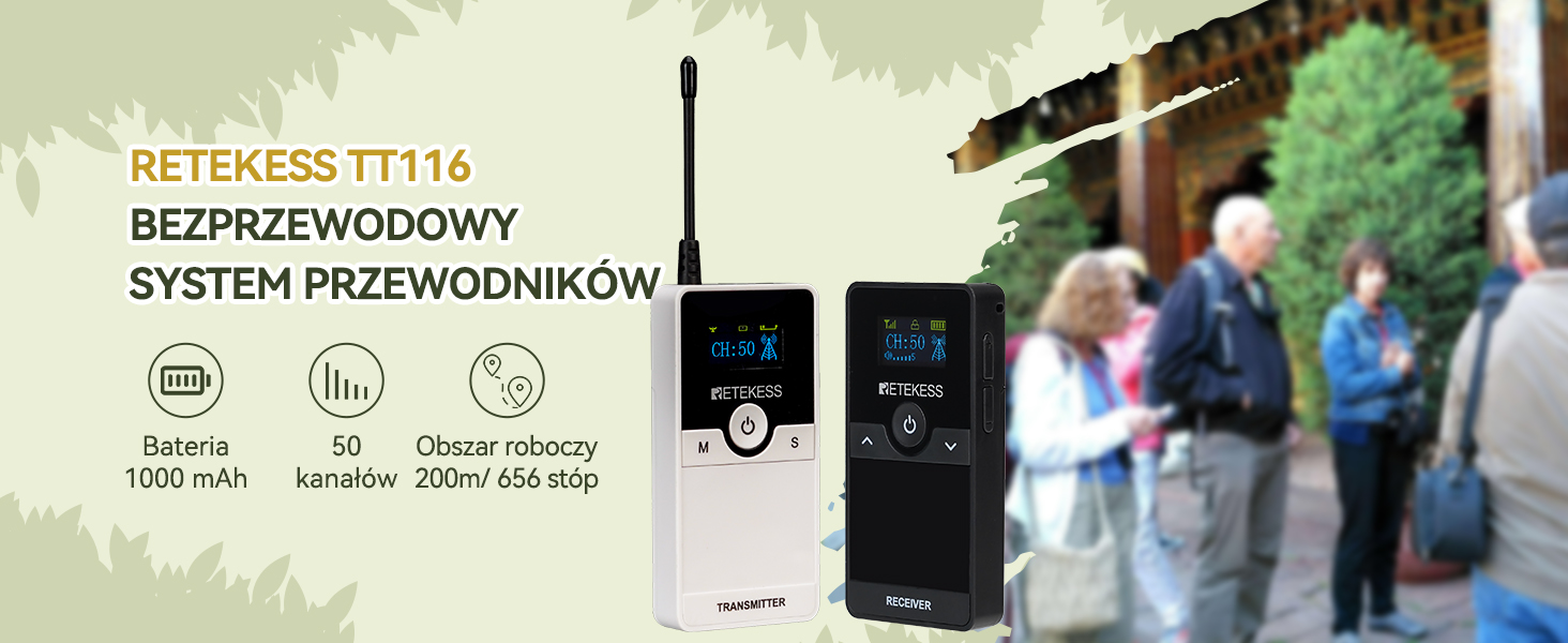 - Рабочее расстояние 200 м/656 футов; Система гидов TT116 обеспечивает широкий охват при посещении музеев или поездках на природу; обеспечение четкого общения между гидом и участниками; посетители могут свободно передвигаться и слушать повествование; даже если они отвлекаются или изучают разные области.