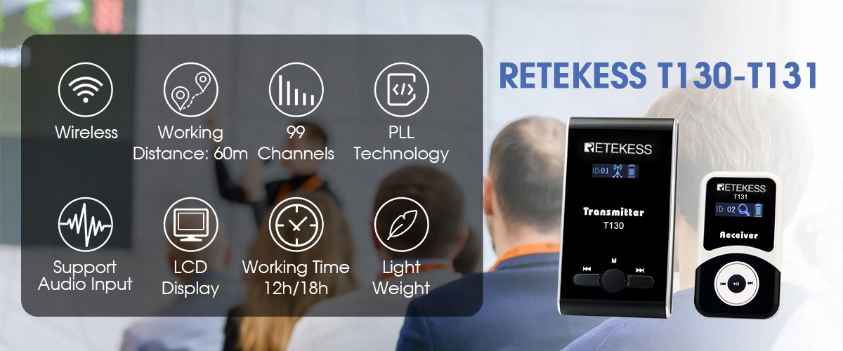 Гарнитура для гида T130 использует передовую технологию синтеза частот с фазовой автоподстройкой частоты, которая автоматически предотвращает помехи, делая сигнал более стабильным, а звук кристально чистым. ясно.