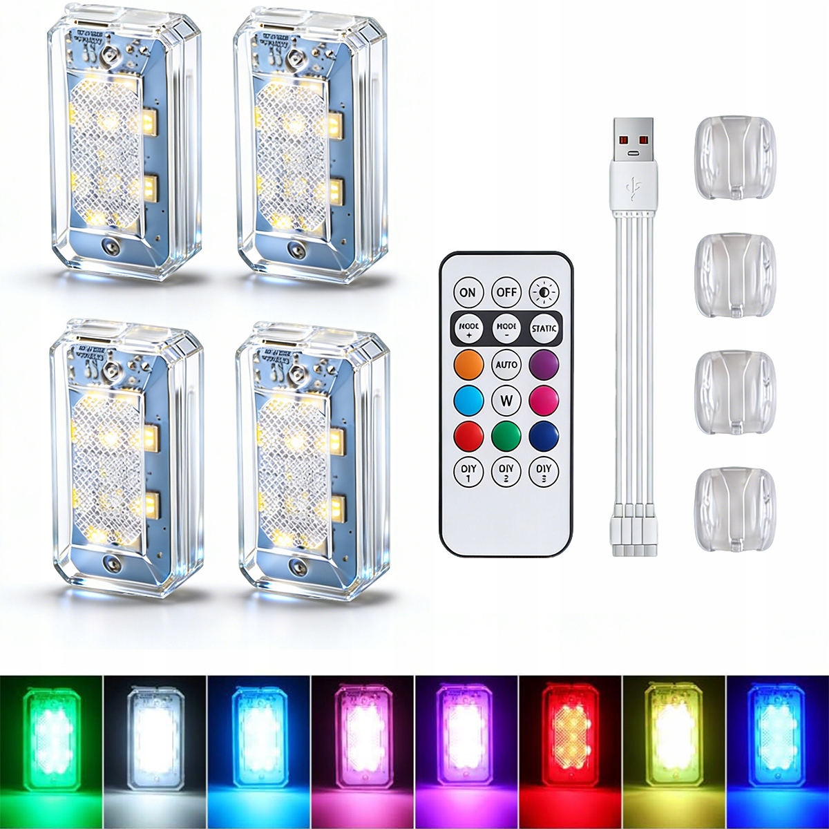 БЕСПРОВОДНАЯ СТРОБОСКОПИЧЕСКАЯ СВЕТОДИОДНАЯ ЛАМПА 4 ШТ. С ДИСТАНЦИОННЫМ УПРАВЛЕНИЕМ 8 ЦВЕТОВ IP65