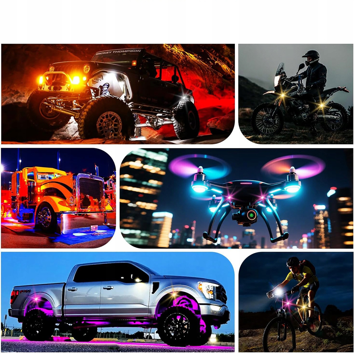 💡💡 Набор из 4 беспроводных светодиодных автомобильных фонарей, беспроводных рок-фонарей с 8 цветами и 10 режимами, светодиодных стробоскопов, мотоциклов, лодок, кемпингов, велосипедов, дронов