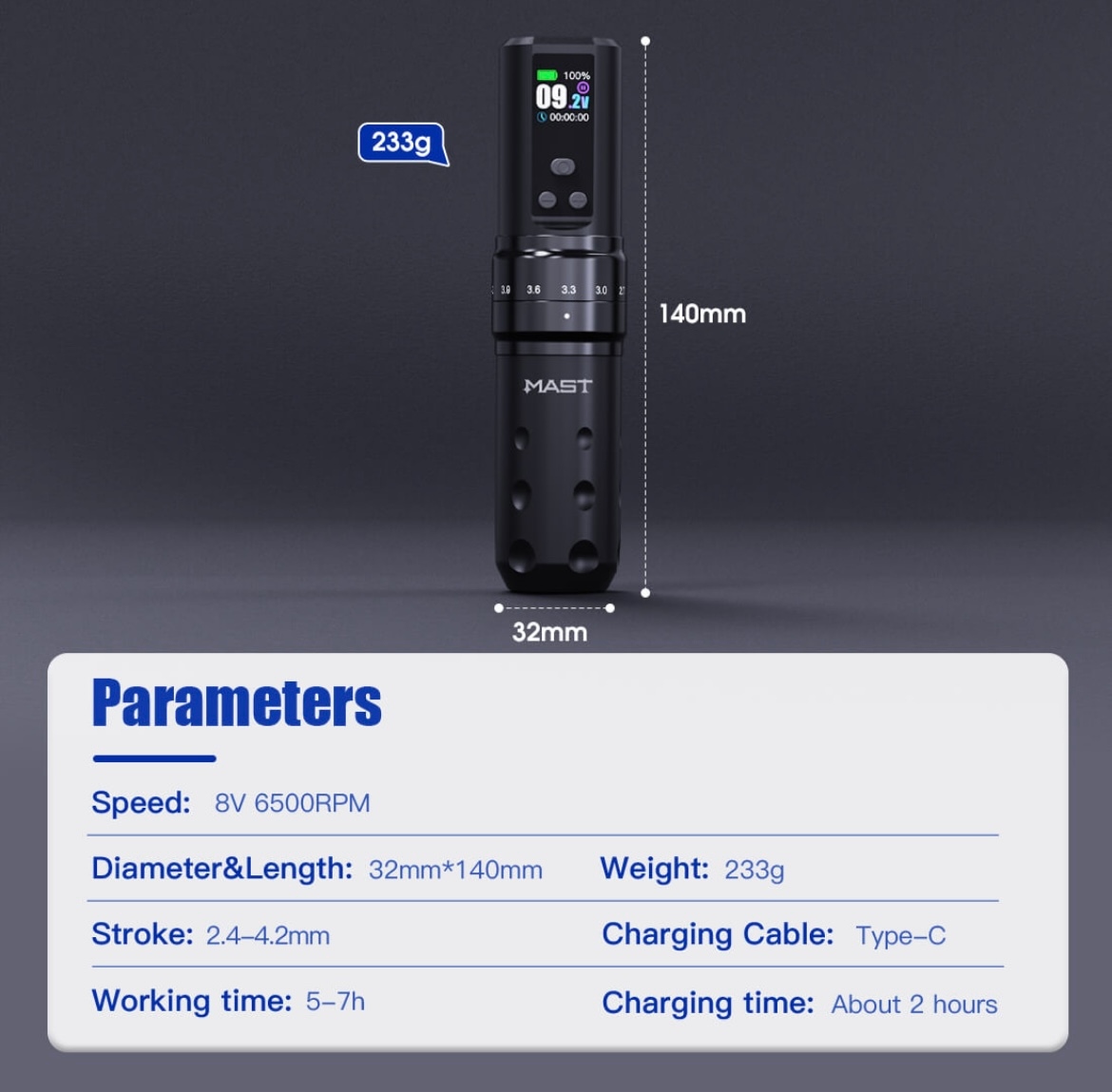 Многоступенчатая регулировка для универсального использования: повышает эффективность и точность работы, обеспечивая большую гибкость и точность для татуировщиков.