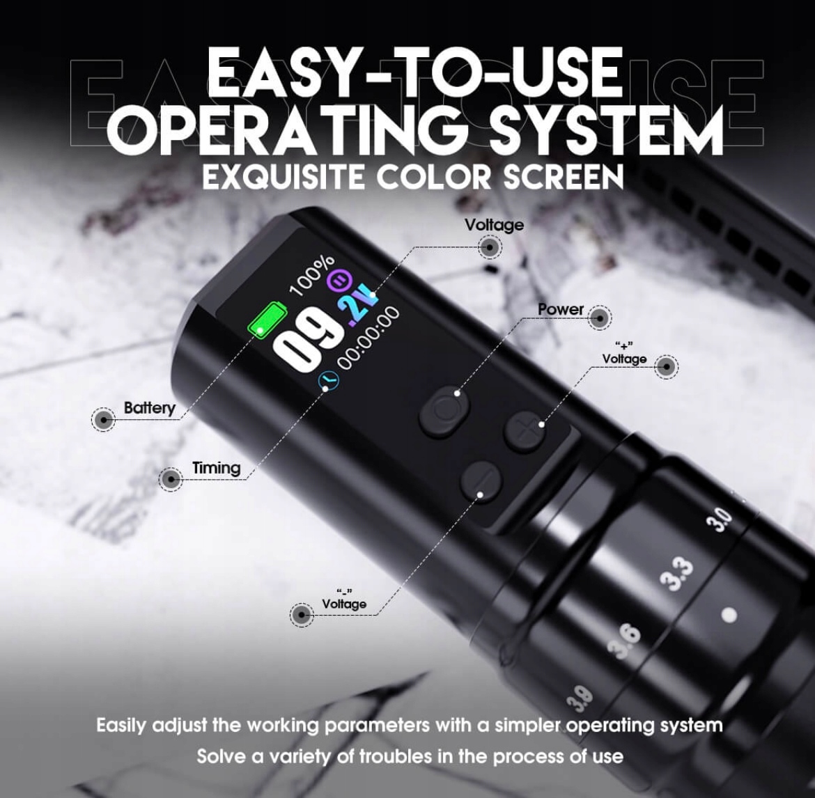 Адаптируется к различным стилям татуировки: поворотная ручка для легкой регулировки длины иглы, проста в эксплуатации.