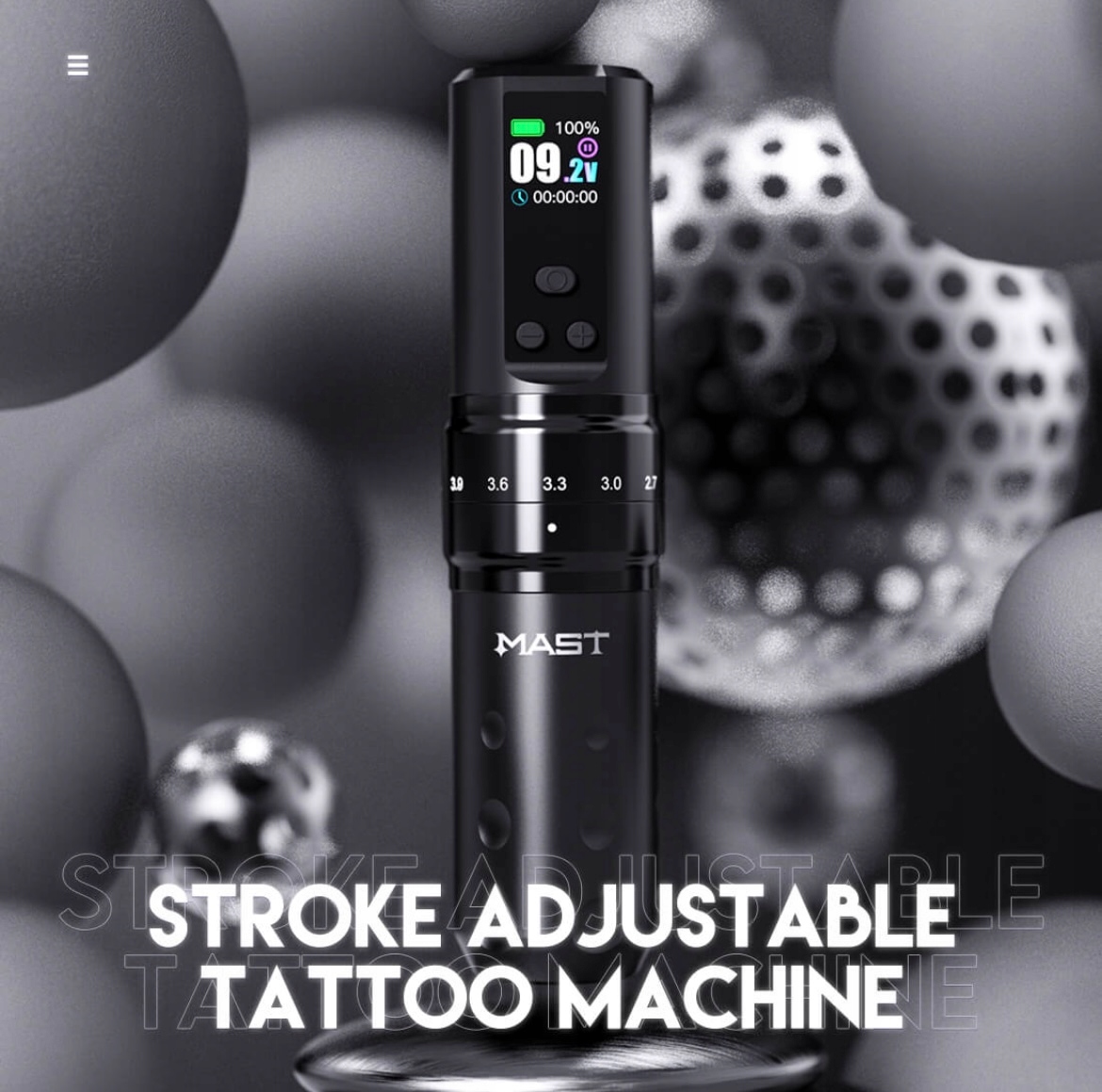 MAST FOLD PRO 2 - БЕСПРОВОДНАЯ ТАТУ-МАШИНКА И ПМУ С РЕГУЛИРУЕМЫМ ХОДОМ, С 2-мя БАТАРЕЯМИ И РАЗЪЕМОМ RCA.