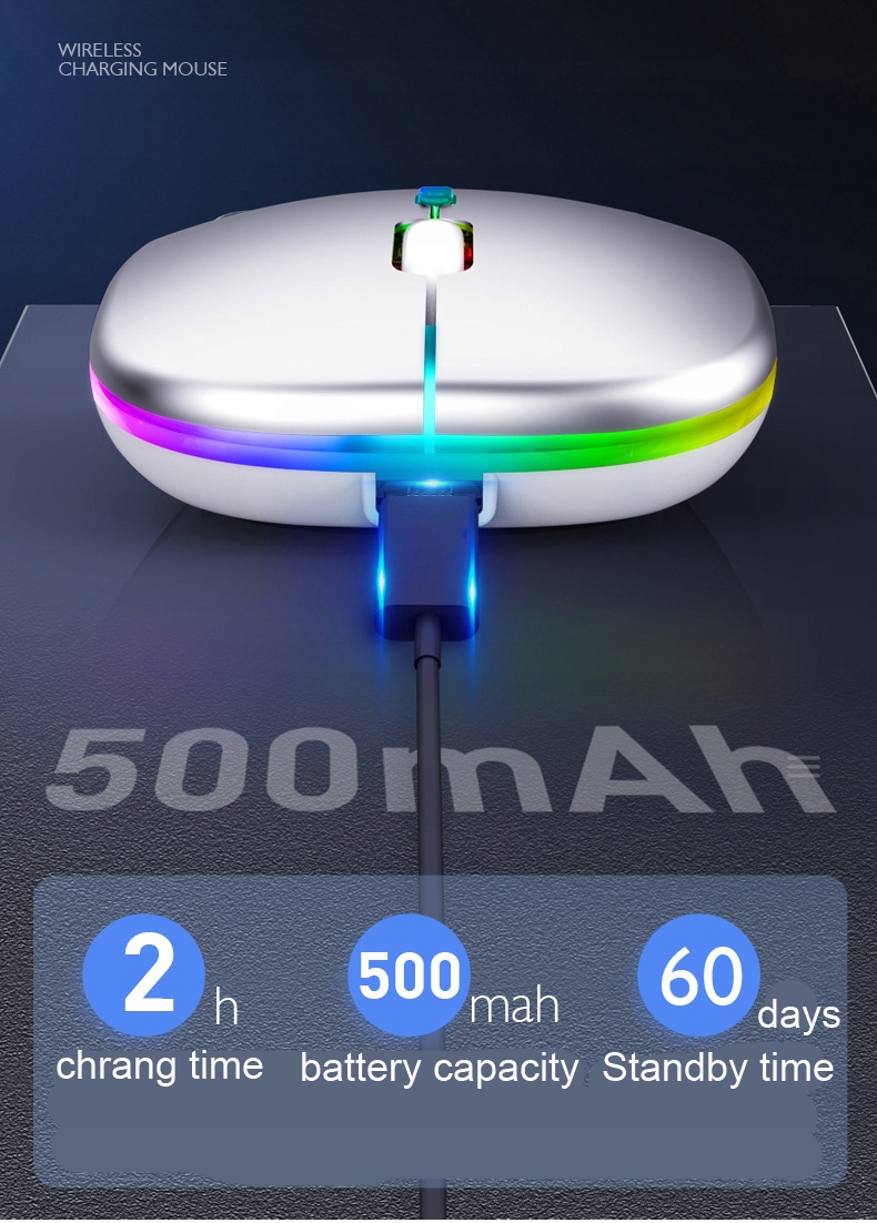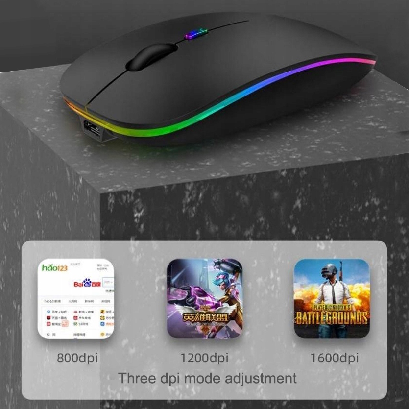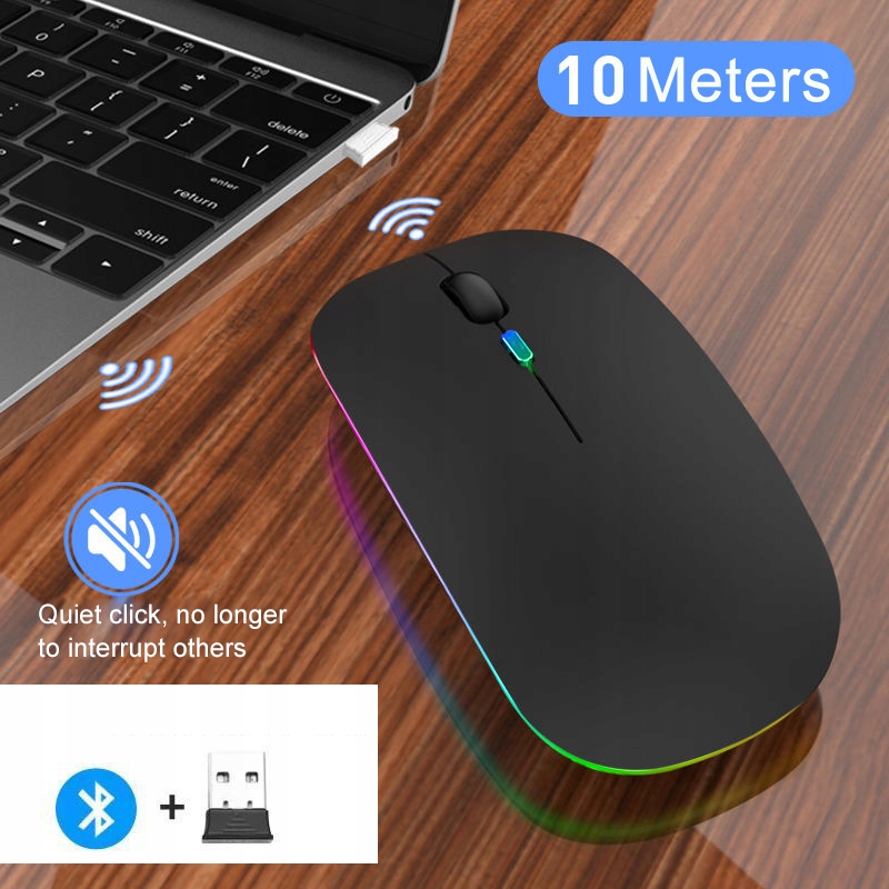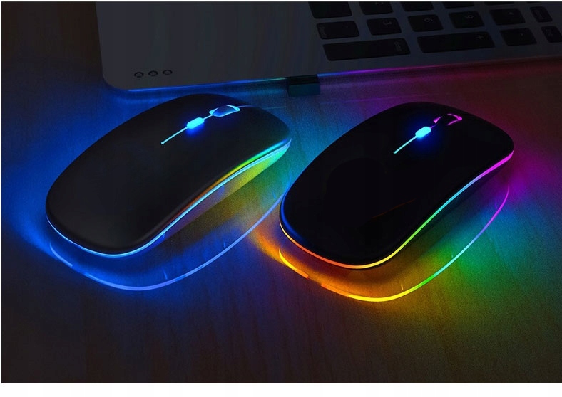 БЕСПРОВОДНАЯ ТОНКАЯ СВЕТОДИОДНАЯ МЫШЬ, ЗАРЯЖАЕМАЯ RGB, Bluetooth+USB, 2,4 ГГц, АККУМУЛЯТОРНАЯ БАТАРЕЯ