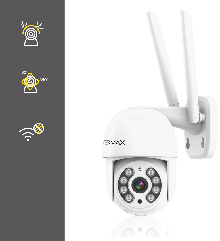 Уличная PTZ-камера Overmax Camspot 4.0 повысит чувство безопасности вашей семьи. Идеально подходит для домашнего мониторинга. Он распознает не только движение, но и силуэт человека! Кроме того, он очень прост в использовании. Благодаря Wi-Fi-соединению вы можете управлять им с помощью приложения на телефоне, где бы вы ни находились.