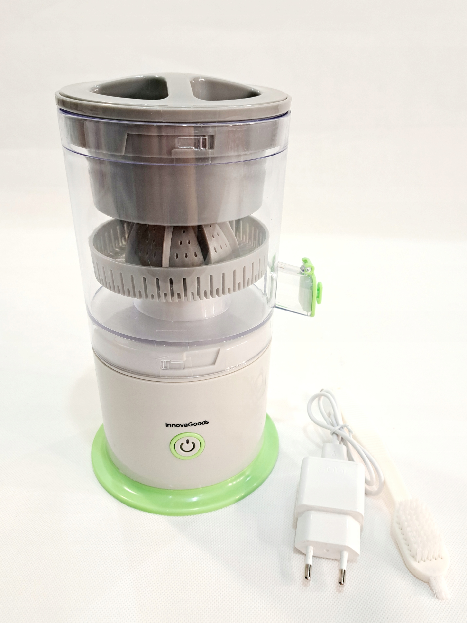беспроводной автоматический соковыжигатель, b>, которая сжимает цитрусовый сок и другие фрукты в очень легком, быстром и эффективном способе. Это портативное, распространяется в детали, имеет предотвращающую прикрепление. Его мощность составляет 40 Вт, а емкость 250 мл.