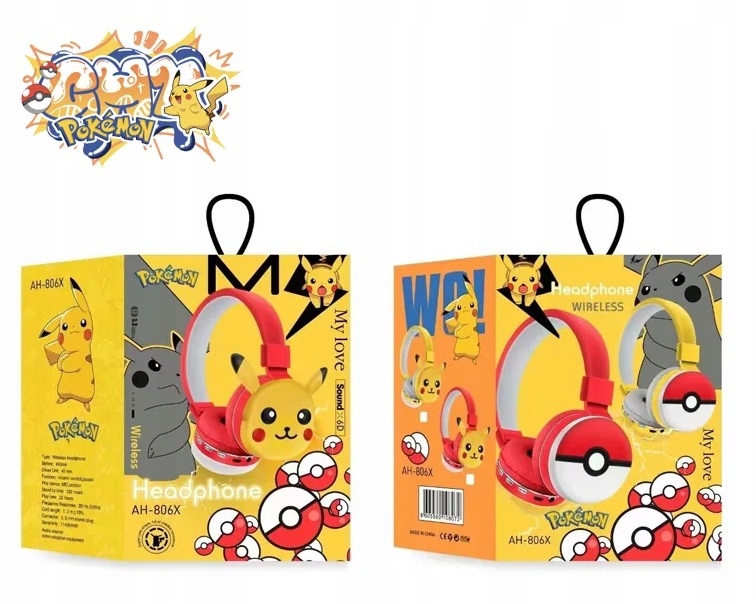 БЕСПРОВОДНЫЕ НАУШНИКИ BLUETOOTH ДЛЯ ДЕТЕЙ НАУШНЫЕ НАУШНИКИ POKEMON PIKACHU