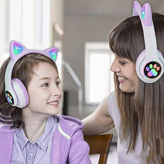 БЕЗДРОТОВІ ДИТЯЧІ НАВУШНИКИ, ДИТЯЧІ НАВУШНИКИ-НАВУШКИ З КОТЯЧИМИ ВУШКАМИ ЗІ LED