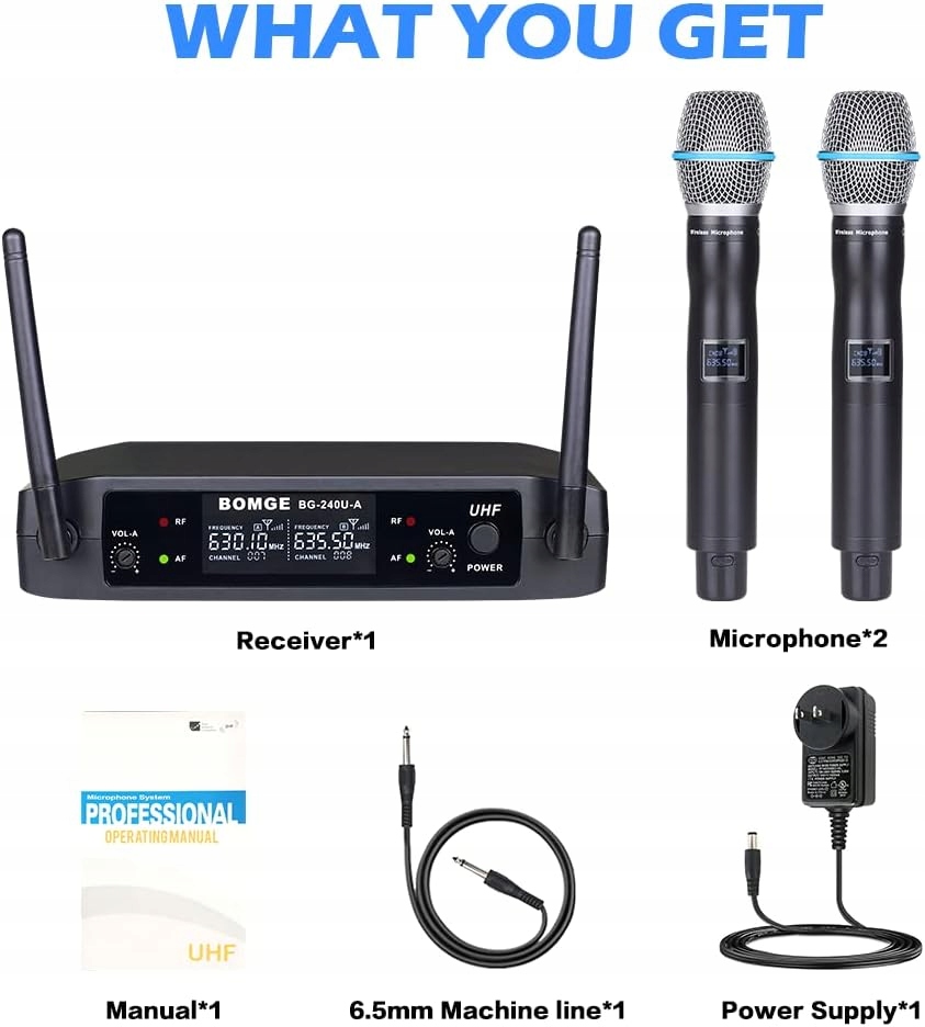 Что вы получаете: вы получаете 2 ручных микрофона, 1 приемник, 1 руководство пользователя, 1 аудиовыходной кабель, 2 антенны. Портативная беспроводная система сочетает в себе профессиональное качество звука, простую настройку и интуитивно понятный интерфейс, обеспечивающий отличное качество звука прямо из коробки.