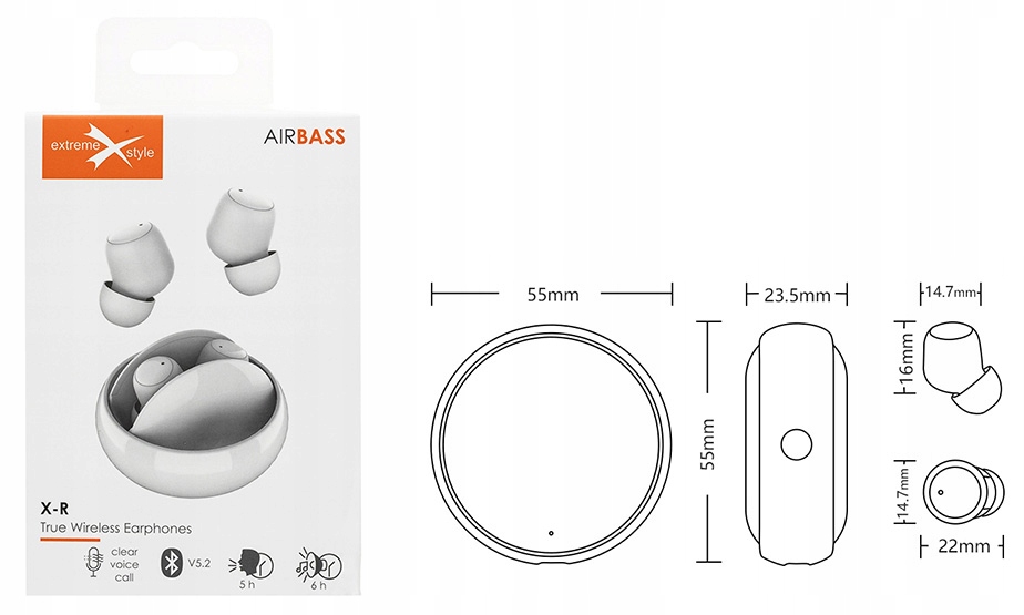 БЕЗДРОТОВІ НАВУШНИКИ BLUETOOTH - IN-EAR - XR