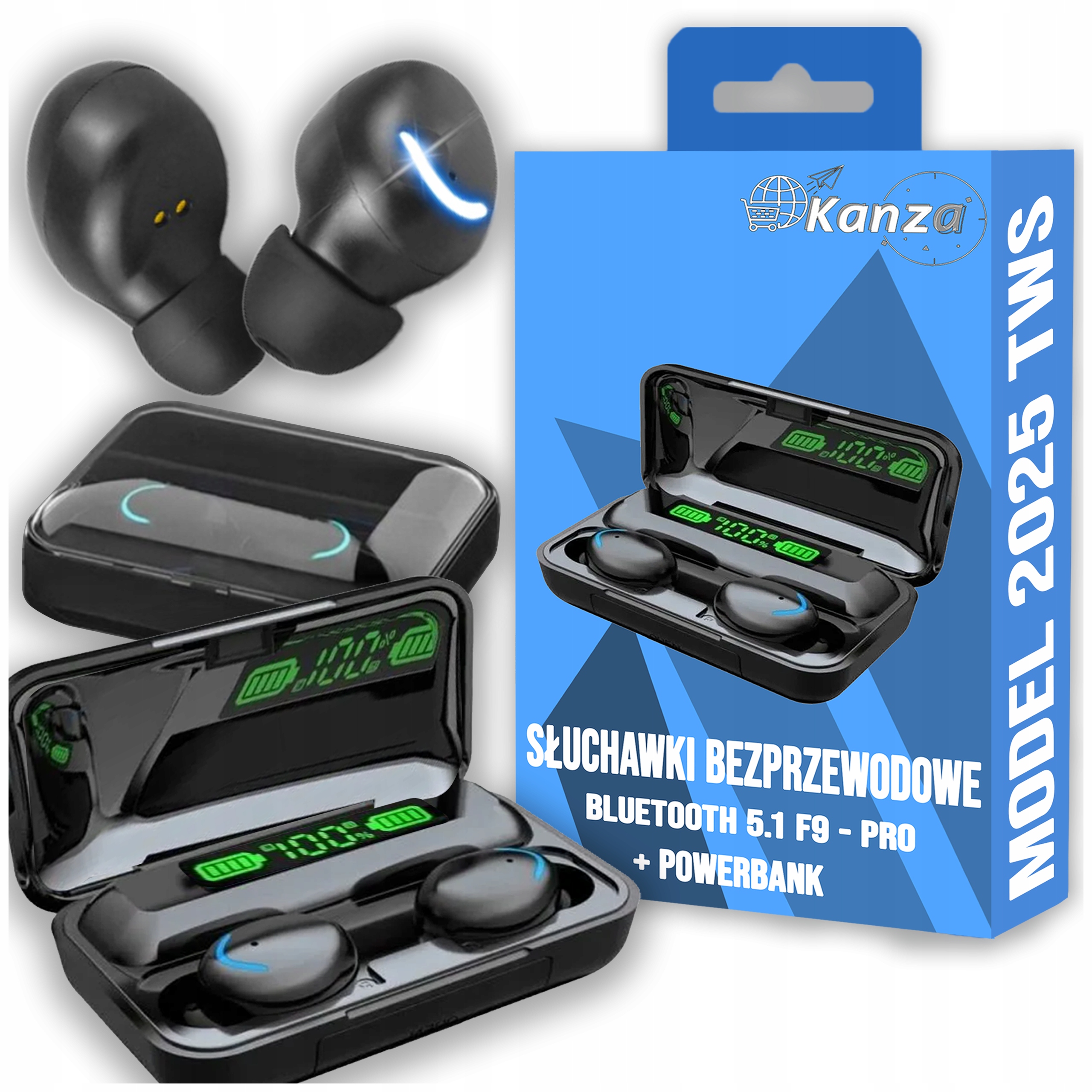 БЕСПРОВОДНЫЕ НАУШНИКИ BLUETOOTH 5.1 F9 — МОДЕЛЬ PRO 2025 TWS + POWERBANK