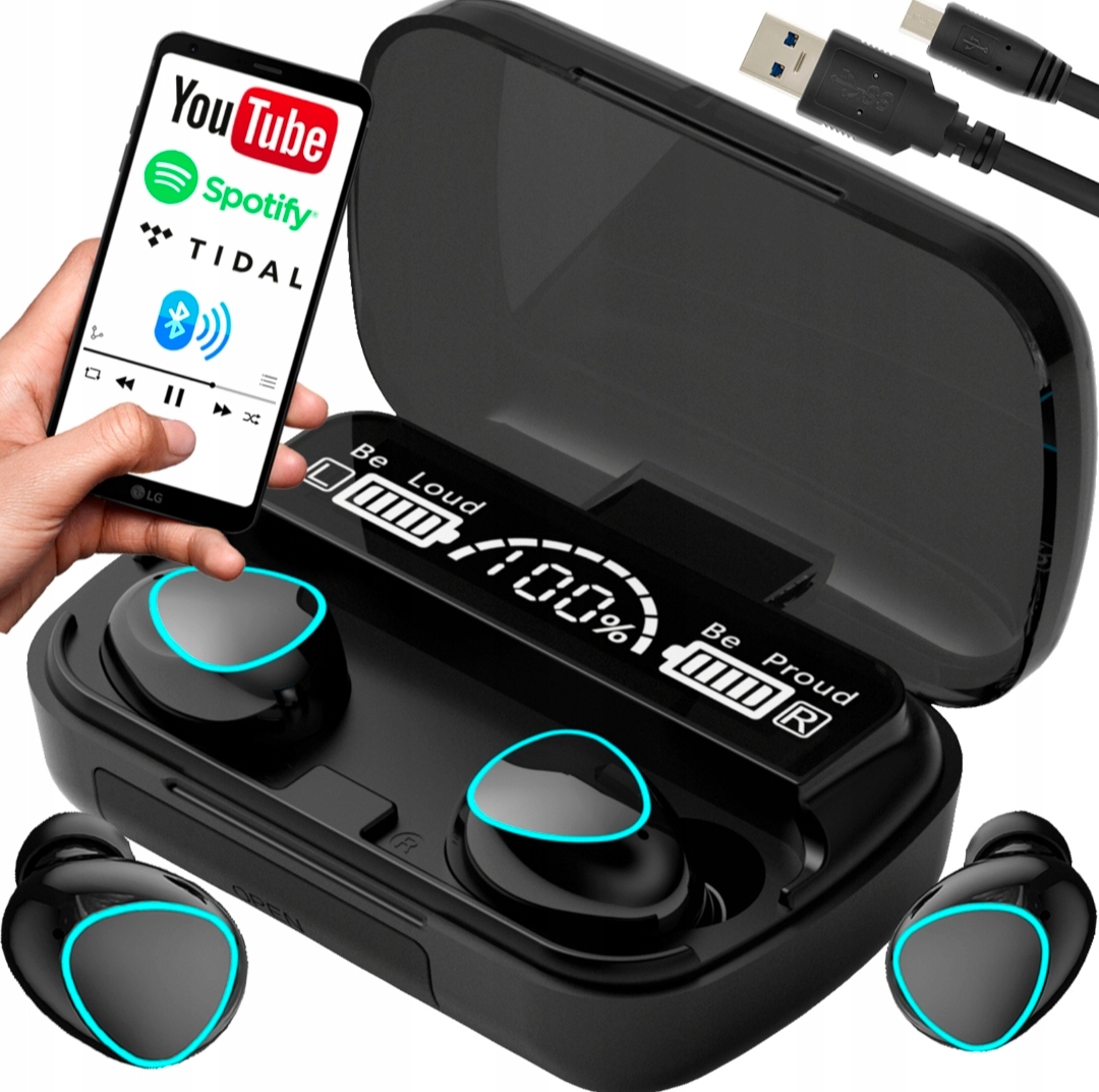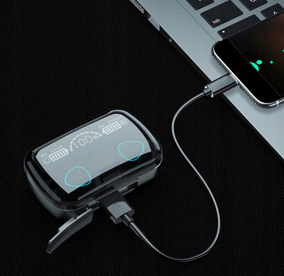 БЕСПРОВОДНЫЕ НАУШНИКИ-ВКЛАДЫШИ BLUETOOTH С МИКРОФОНОМ POWERBANK С СЕНСОРНЫМ УПРАВЛЕНИЕМ АУДИОСИСТЕМОЙ С ЖК-ДИСПЛЕЕМ