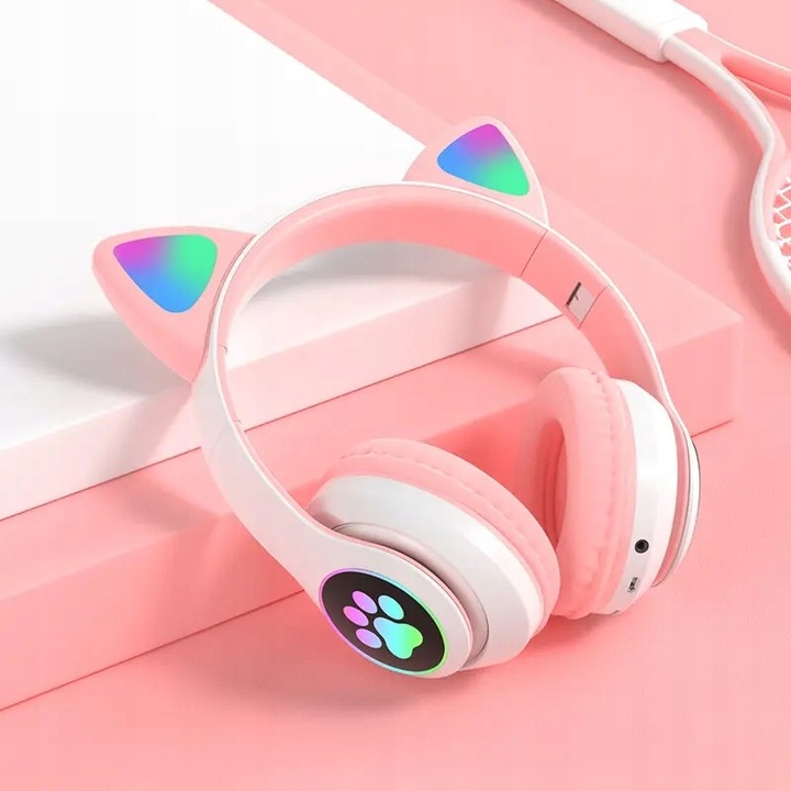 БЕСПРОВОДНЫЕ НАУШНИКИ ДЛЯ ДЕТЕЙ КОШАЧЬИ УШИ RGB РОЗОВЫЕ ДЛЯ ДЕВОЧЕК