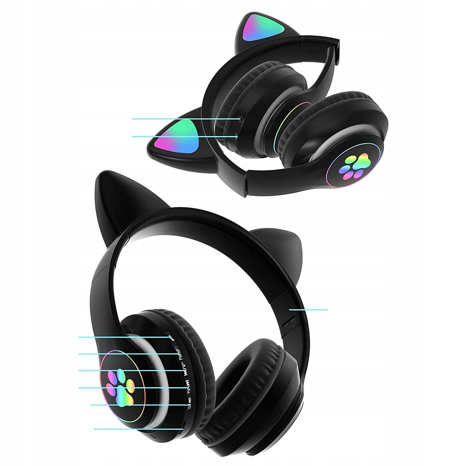 БЕЗДРОТОВІ НАВУШНИКИ СТЕРЕОФОН BLUETOOTH 5.0 З КОТЯЧИМИ ВУШКАМИ ЧОРНІ