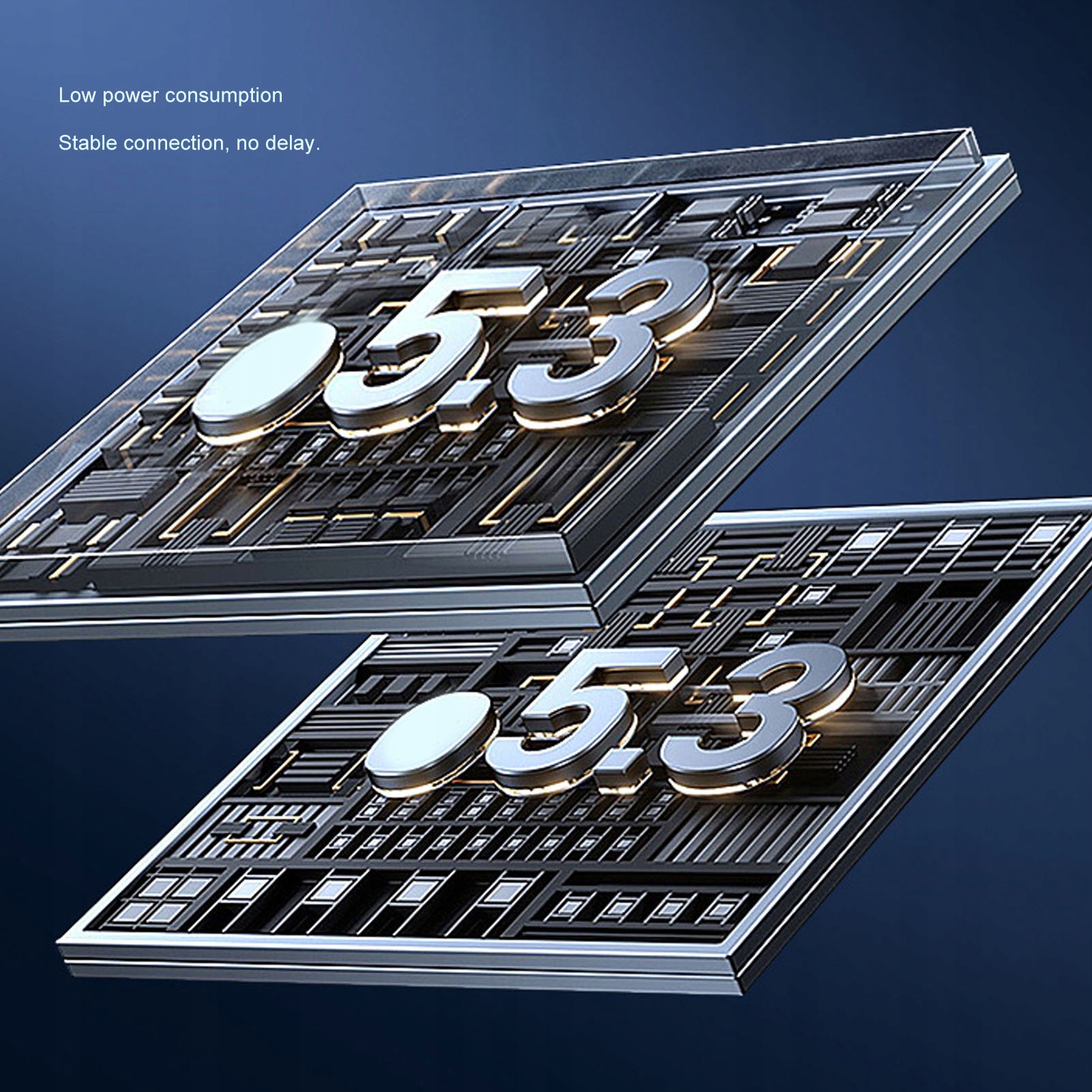 1. Bluetooth 5.3: широкий спектр совместимости. Использование технологии Bluetooth 5.3, объемный звук, простота подключения к смартфонам, отсутствие ограничений по кабелю, стабильное соединение, без задержек.