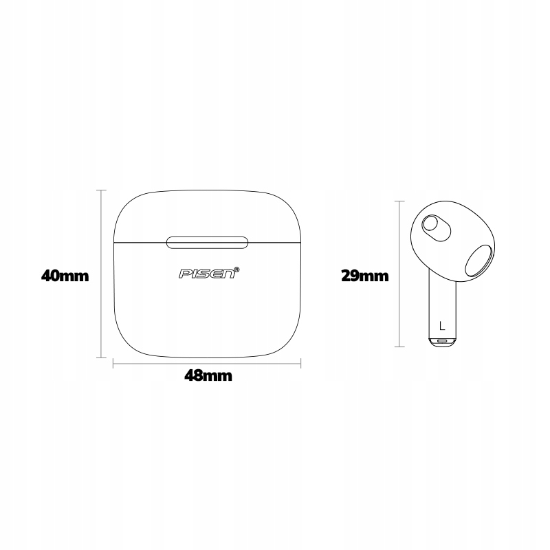 - Вес нетто: один наушник весит около 5 г, чехол для зарядки весит около 29,8 г, общий вес около 35,8 г.