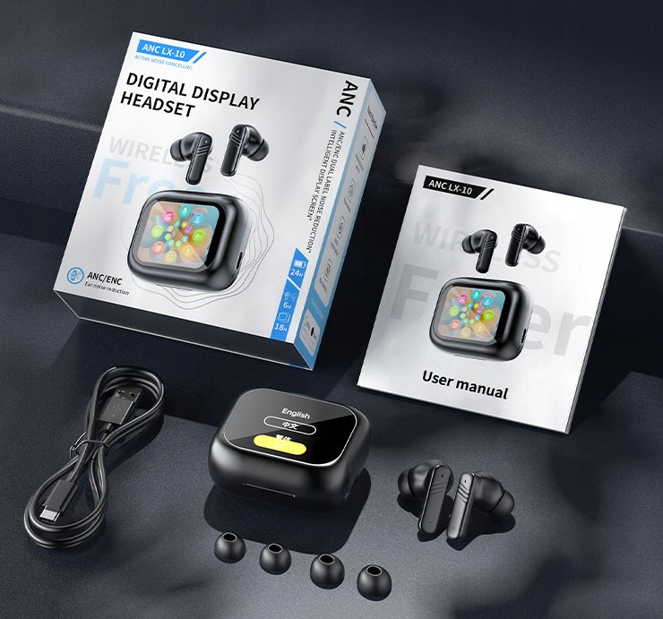 НАУШНИКИ TWS LX-10 С ANC И ENC + ЦВЕТНЫМ СВЕТОДИОДНЫМ ДИСПЛЕЕМ