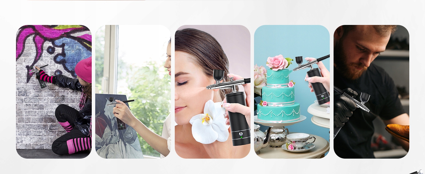 🎨Простота в использовании: после подключения достаточно нажать белый переключатель и спусковой крючок, чтобы начать работу. Вы можете свободно контролировать количество краски, перемещая спусковой крючок назад.