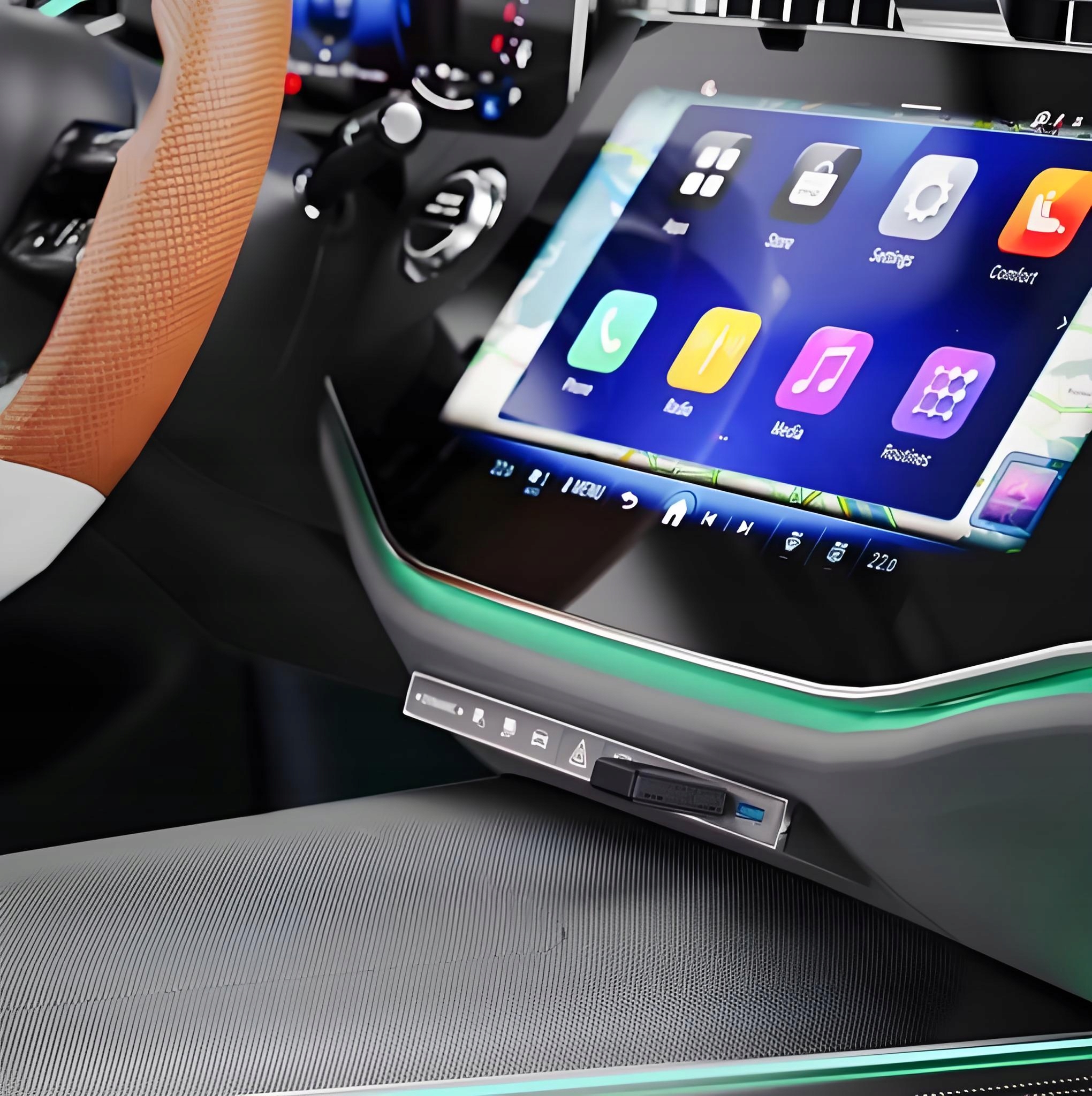 - Используйте приложение: Теперь вы можете использовать по беспроводной сети такие приложения Apple CarPlay, как «Карты», «Музыка», «Сообщения», «Телефон» и многие другие, управляя ими с помощью сенсорного экрана, голоса или кнопок на рулевом колесе.