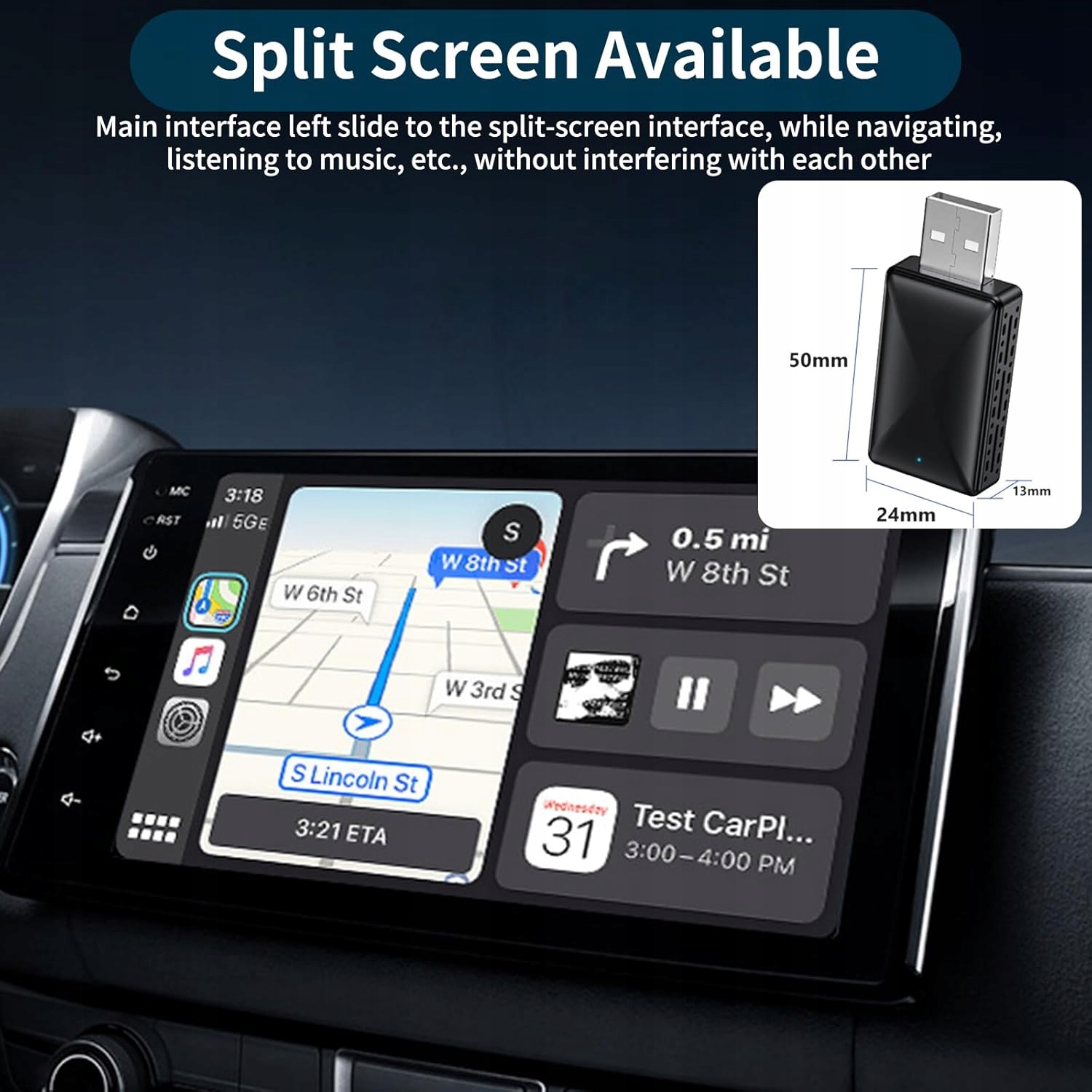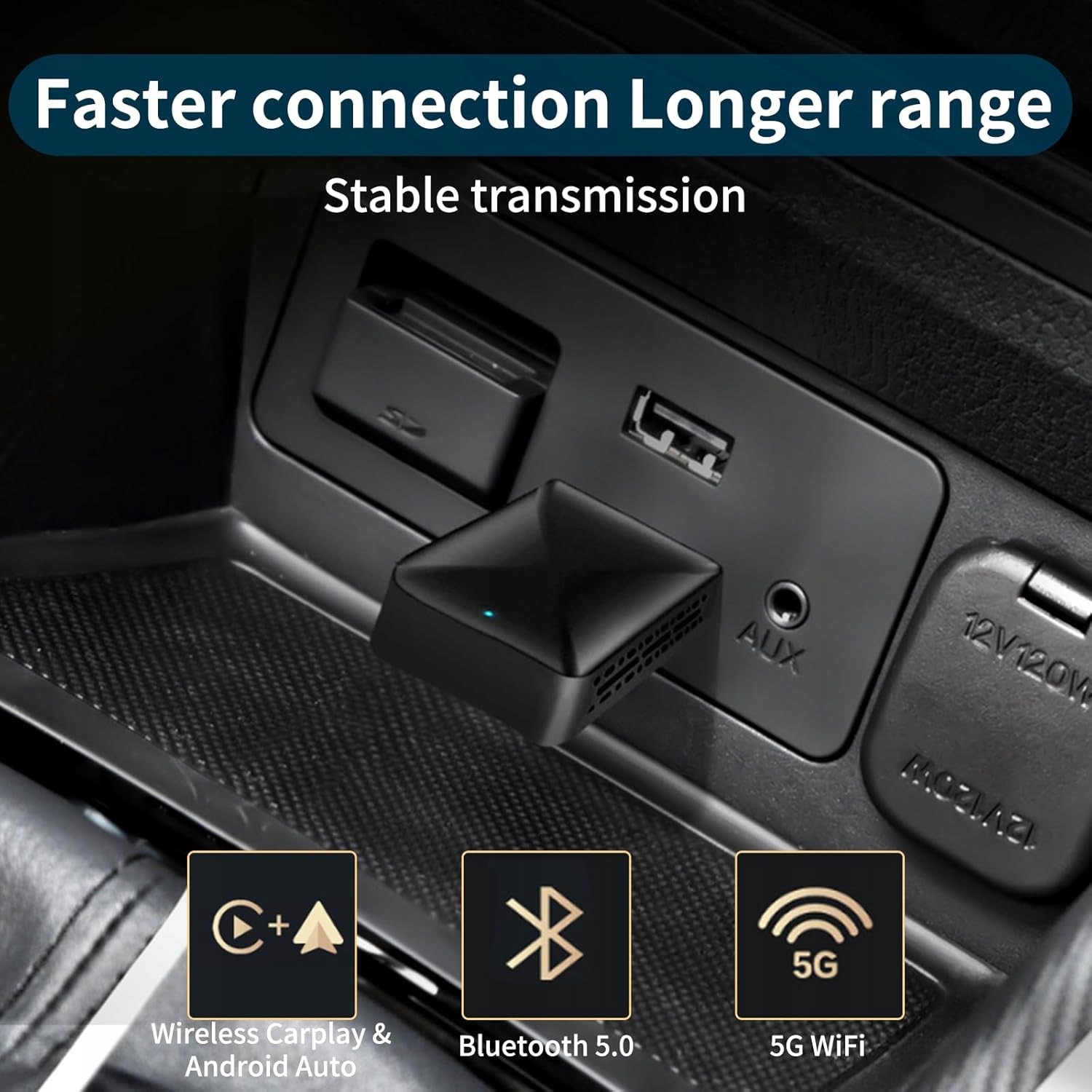 Наша технология 5 ГГц обеспечивает быстрое и стабильное соединение. Благодаря чипу A8-5G, адаптер подключается к CarPlay всего за несколько секунд. Откройте для себя современность и комфорт беспроводного вождения!
