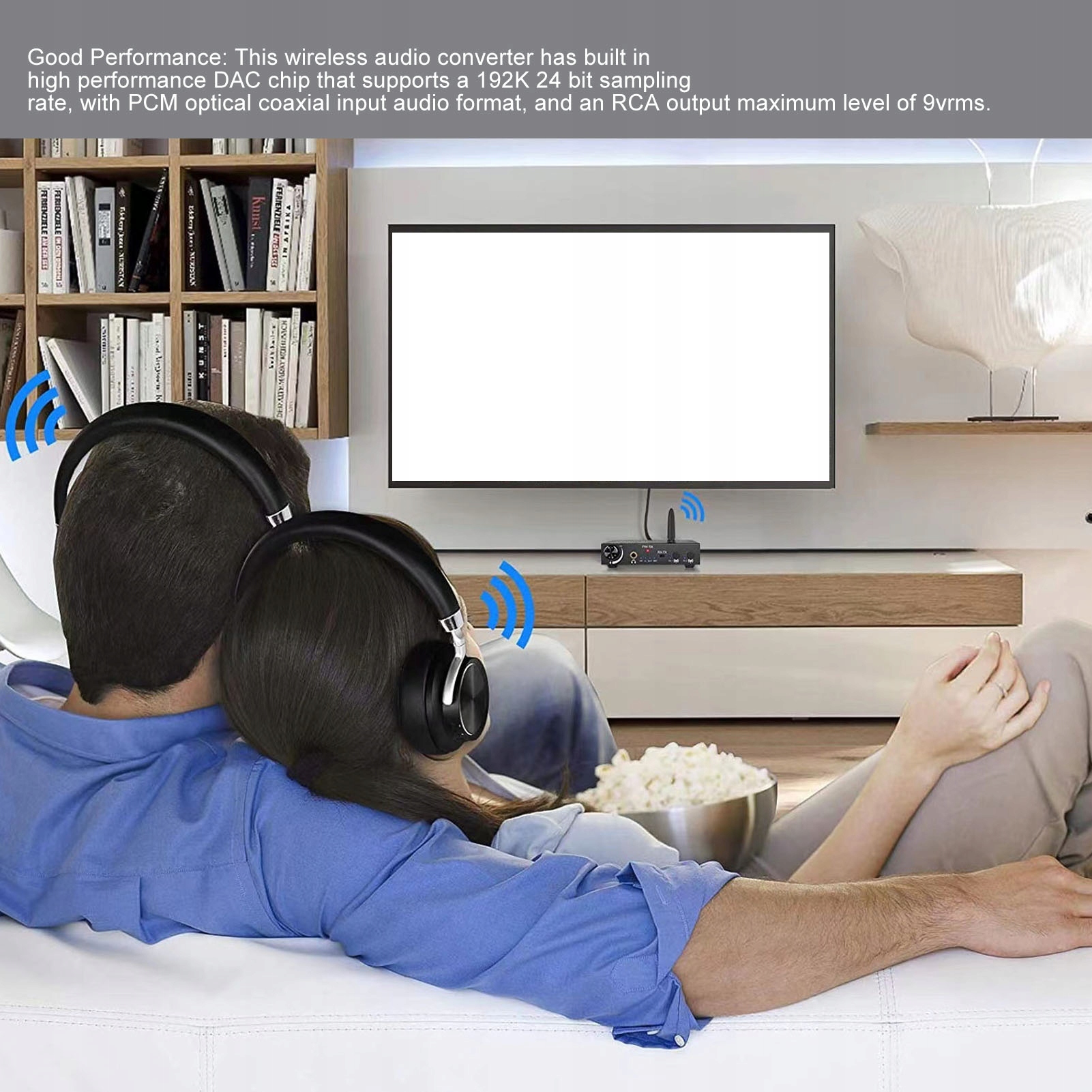 3. Хорошая производительность: этот беспроводной аудио преобразователь имеет встроенный ЦАП с высоким уровнем высокого уровня, который отбирает частоту выборки 192 К в 24 битах, с оптическим концентрическим аудио -форматом PCM и максимальным уровнем RCA 9 VRM.