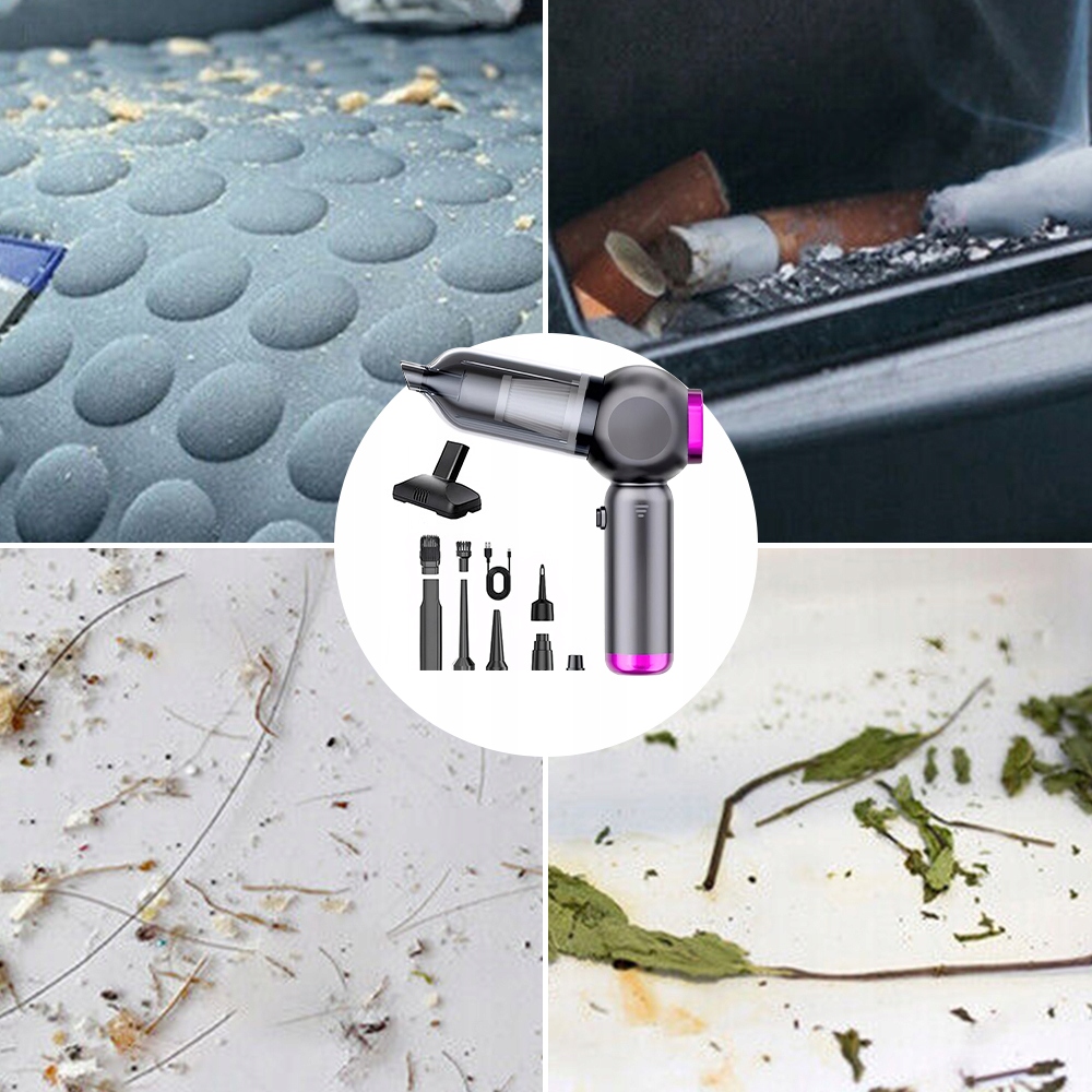 This wireless car vacuum cleaner with an improved brushless engine offers 22000pa sucking power, ideal for removing animal hair, crumbs, dust and sand from car seats, sof and other car seats, sof and other car seats surface.