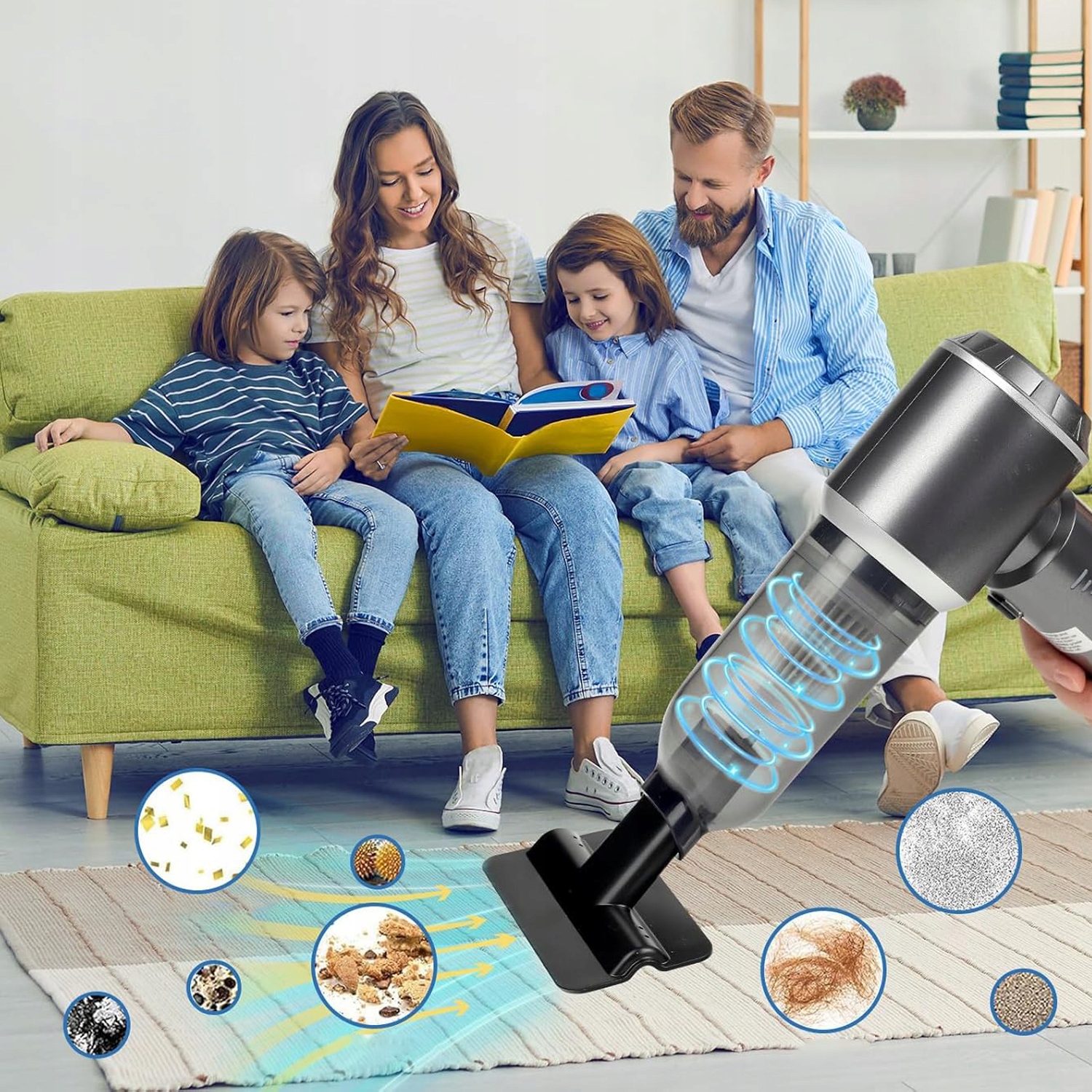 Этот эффективный беспроводной вакуумный очиститель имеет встроенную батарею 6000 мАч, которая обеспечивает 15-30 минут очистки, в зависимости от выбранной мощности. Портативный вакуумный очиститель быстро заряжается зарядным кабелем типа C, и он может быть полностью заряжен всего за 3 часа.