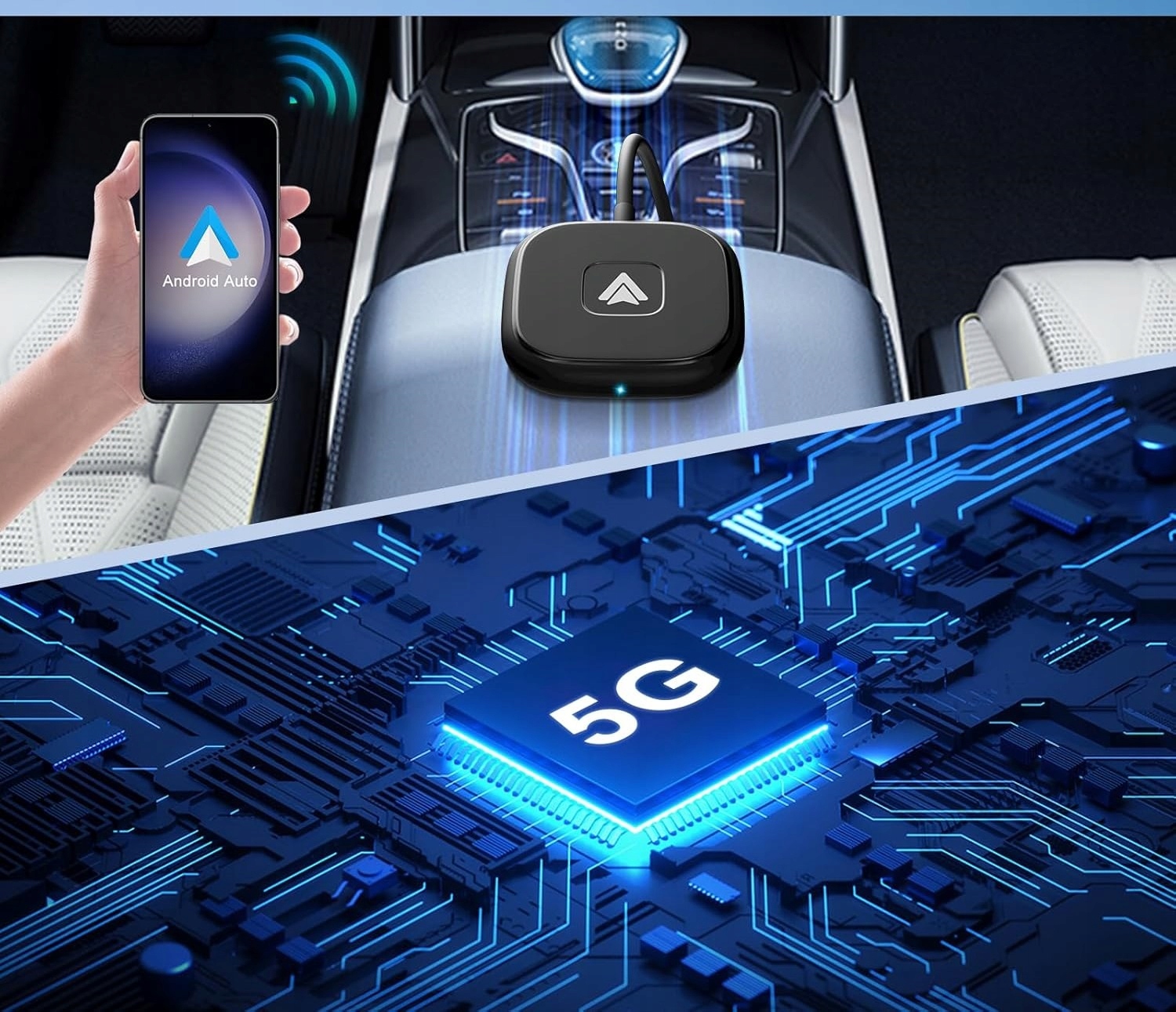- Беспроводной адаптер Android Auto имеет встроенный чип 5,8 ГГц, который обеспечивает быстрое и стабильное соединение телефона с системой Android и автомобилем через Bluetooth и модули Wi-Fi 5 ГГц, ускоряя отвод тепла и делая адаптер более прочным и стабильным.