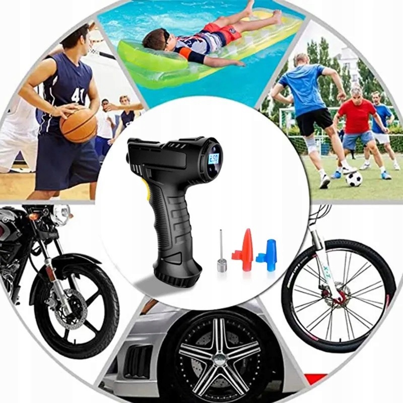 Беспроводной компрессор — это не только устройство, предназначенное для автомобилей. Благодаря этому мы также можем надувать колеса велосипедов, мотоциклов и самокатов. Благодаря входящим в комплект воздушным насадкам мы также можем надувать всевозможные детские аксессуары, такие как мячи или матрасы.