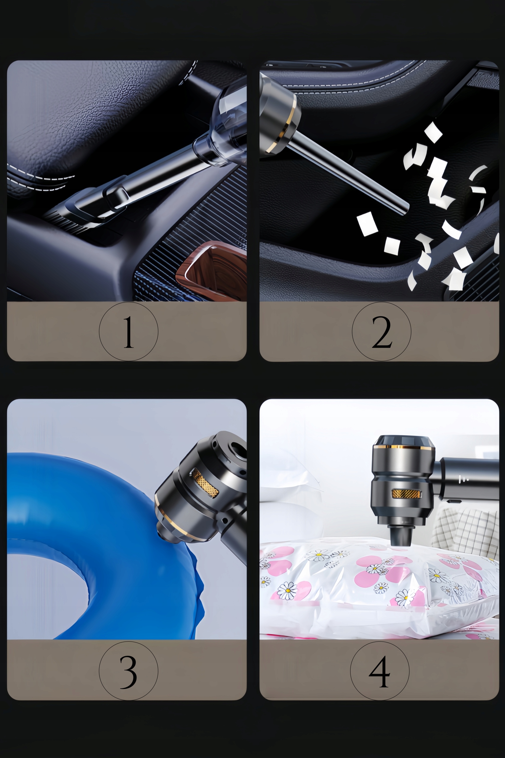 ⭐Один пылесос = автомобильный пылесос + домашний пылесос + фен + воздушный насос + средство для удаления шерсти домашних животных. Это практичное устройство «пять в одном» легко справляется со всем: от повседневной уборки автомобиля и наведения порядка в доме до экстренных поездок!⭐