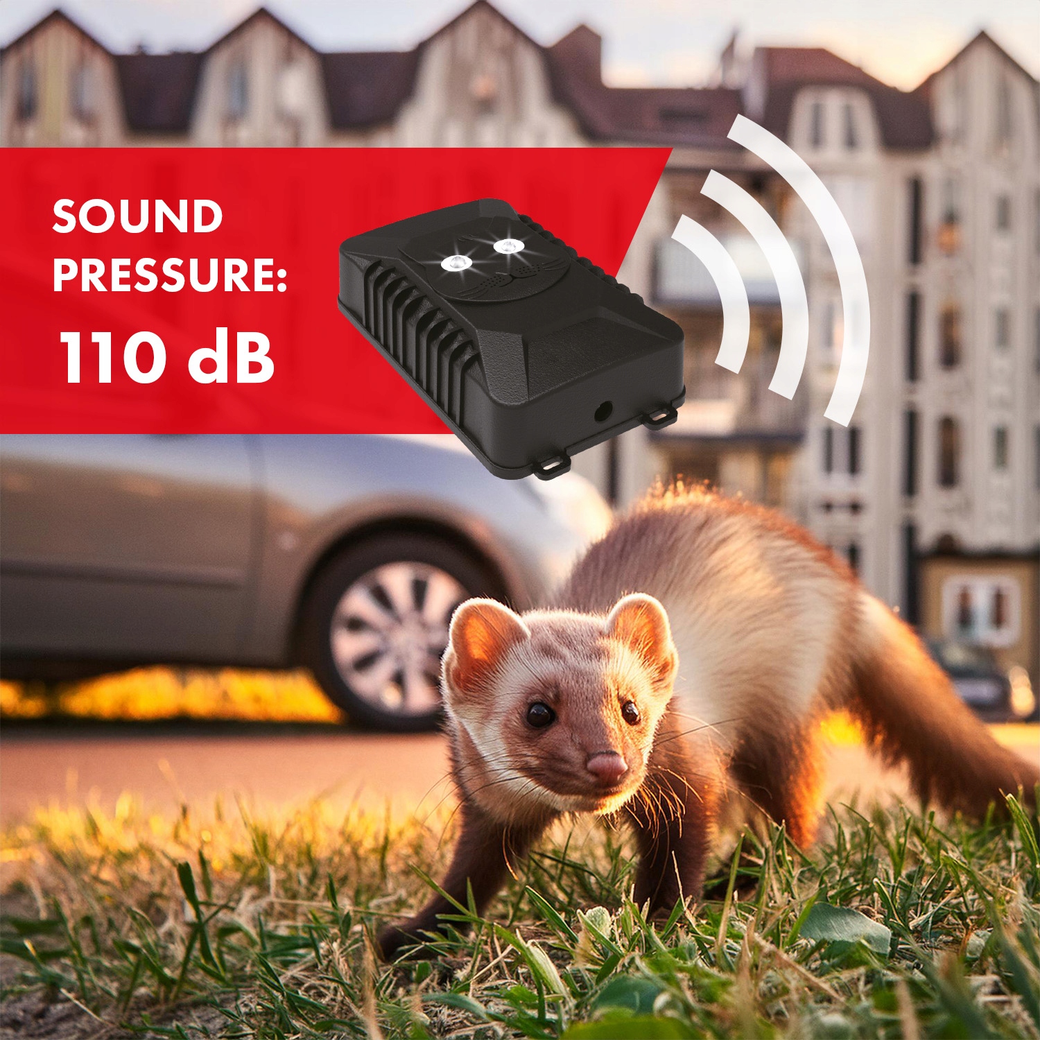 Ультразвуки с переменной частотой в диапазоне 18-36 кГц безвредны для собак, кошек и других домашних животных , и в то же время эффективно отпугивает грызунов и куниц.