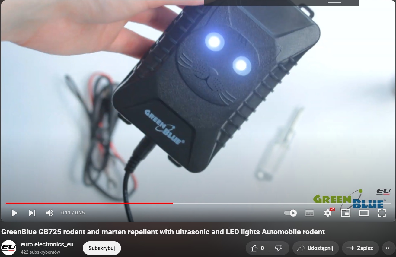 Репеллент GreenBlue GB725 — идеальное решение для людей, которые хотят защитить свой транспорт от повреждений, причиняемых куницами, крысами и мышами. .