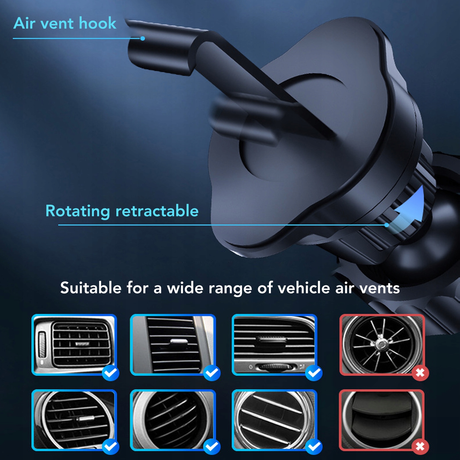 5. Широкая совместимость: регулируемое основание беспроводного автомобильного зарядного устройства подходит для телефонов размером 5,4–7,2 дюйма, обеспечивая идеальную посадку и точное положение зарядки для широкого спектра устройств.