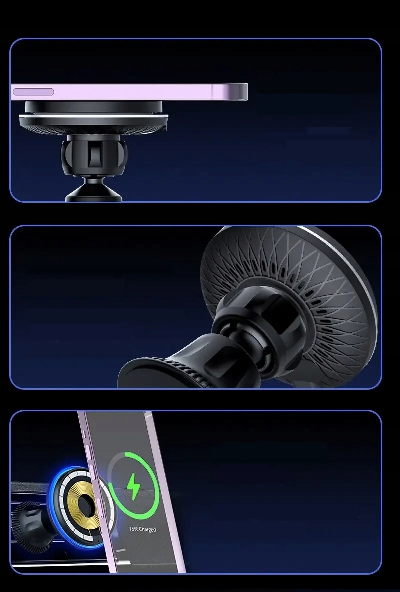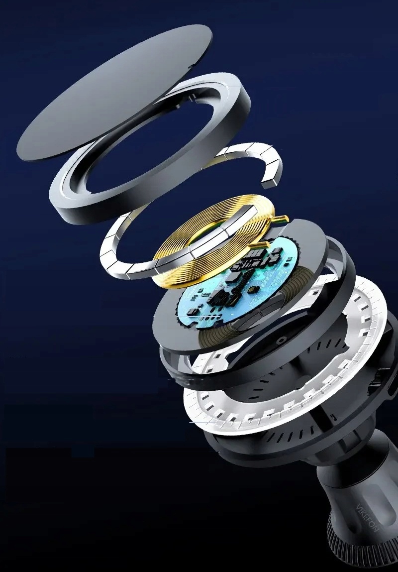 Этот держатель не только обеспечивает беспроводную зарядку, но и обеспечивает надежную фиксацию устройства с помощью магнитных соединений. Правильно подобранные отделочные материалы гарантируют долговечность и прочность.