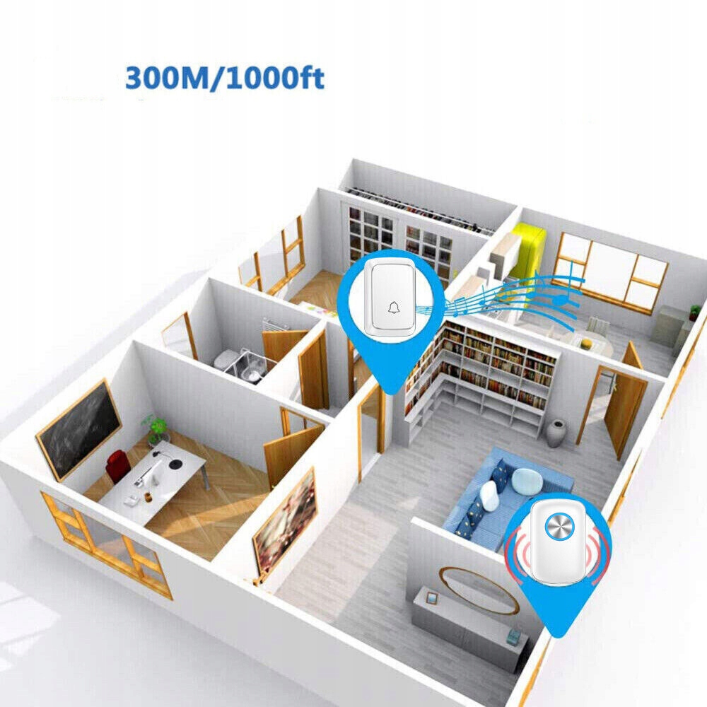 ✨ Сверхдальний радиус действия: сигнал беспроводного дверного звонка охватывает расстояние до 300 метров (зона без препятствий), поэтому вы можете четко слышать беспроводной дверной звонок, даже если вы находитесь в нескольких комнатах или на другом этаже. / p>
