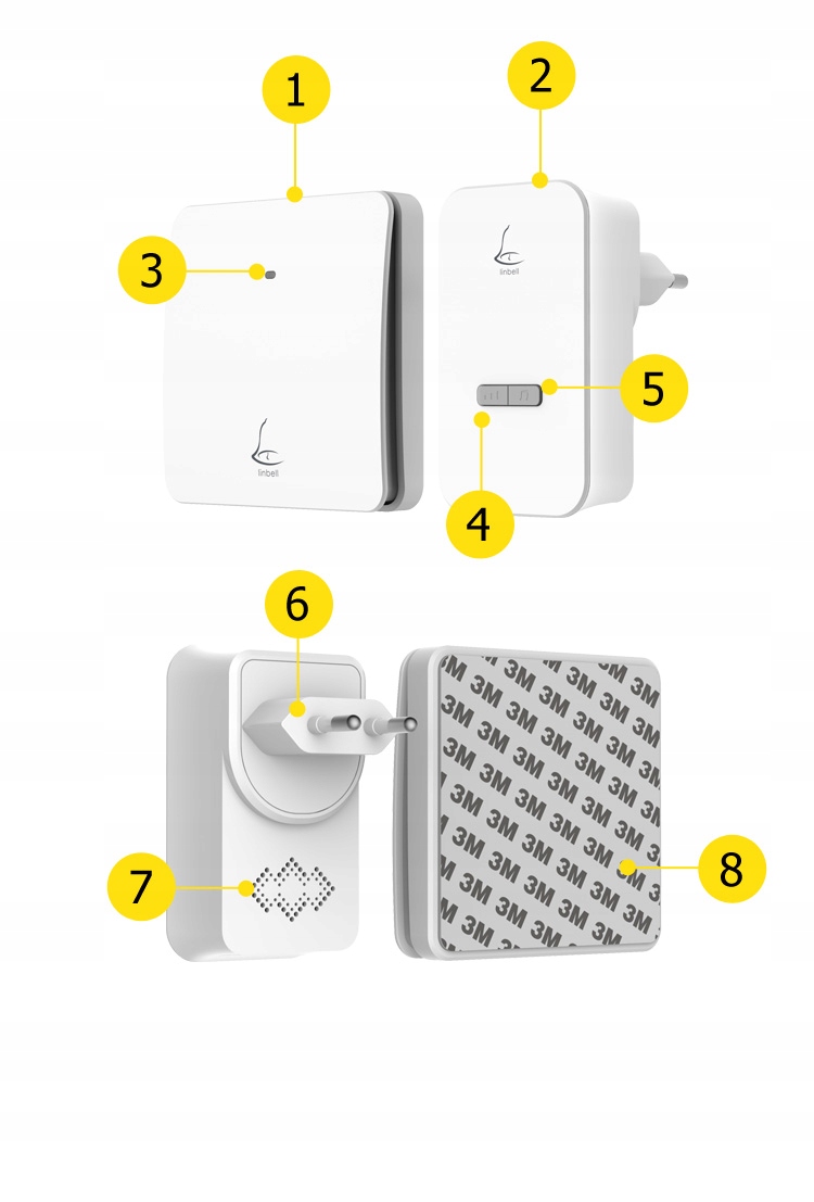 ⚪ Кнопка звонка (передатчик) имеет встроенный светодиод, который мигает 1x при нажатии на кнопку