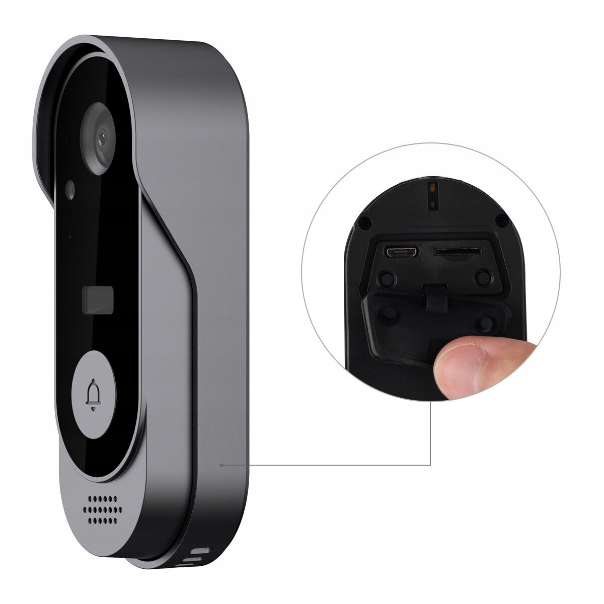 5. Дверной звонок поддерживает карты TF. Максимальный поддерживаемый объем — 64 ГБ (не включая карту памяти). Карта устанавливается под резиновую прокладку за звонком.