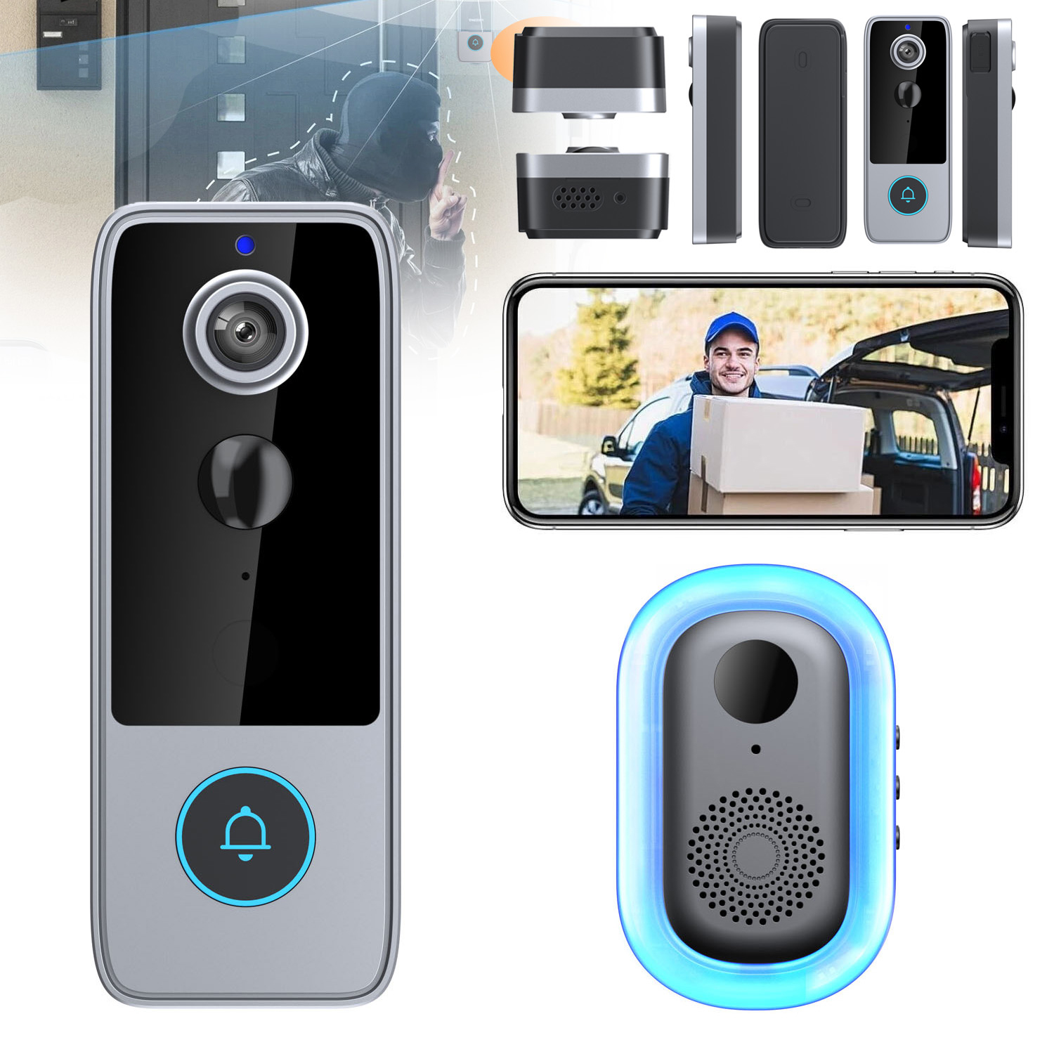 БЕСПРОВОДНОЙ ДВЕРНОЙ ЗВОНОК С КАМЕРОЙ ДЛЯ ДВЕРЕЙ И ВОРОТ WIFI УМНЫЙ УДАЛЕННЫЙ ПРОСМОТР