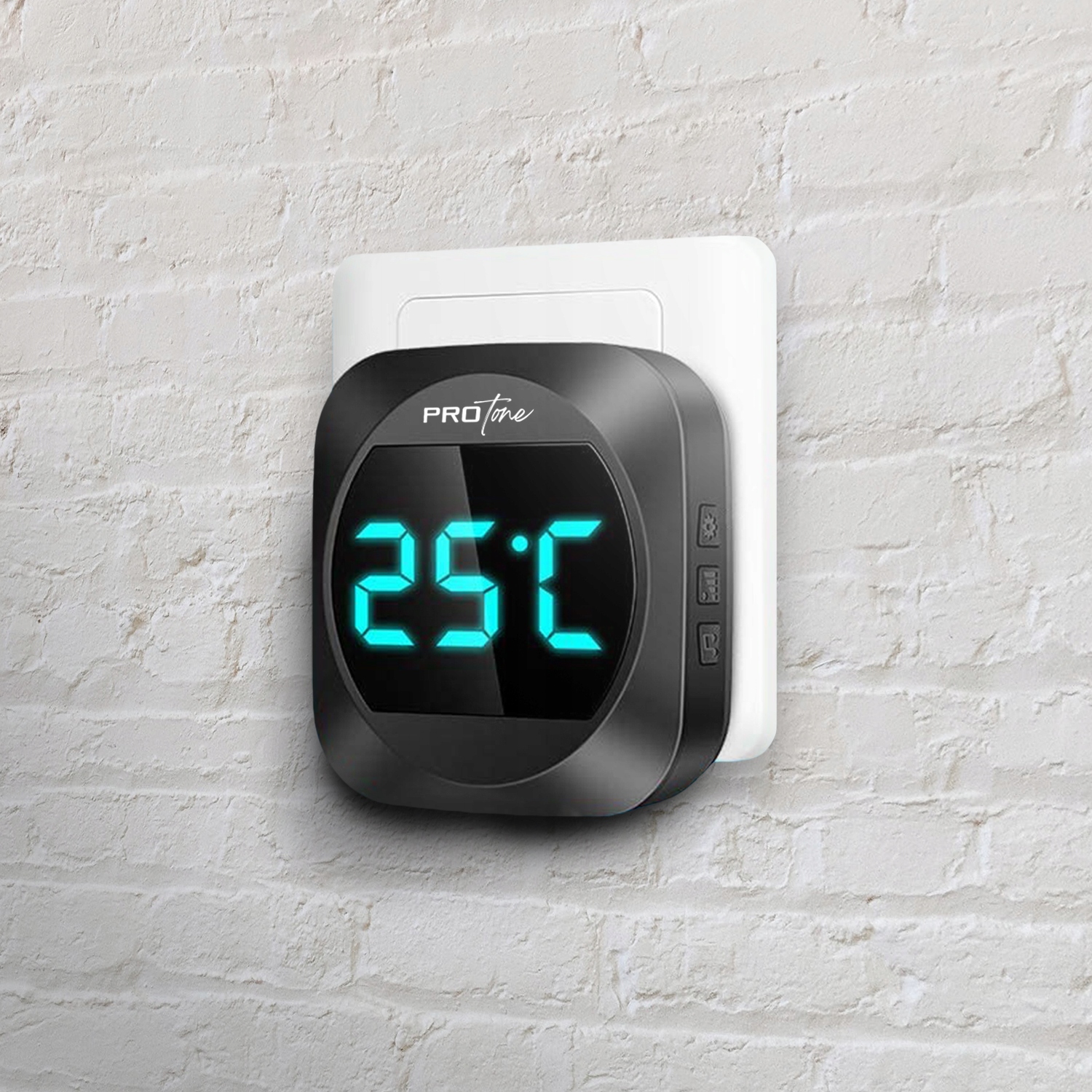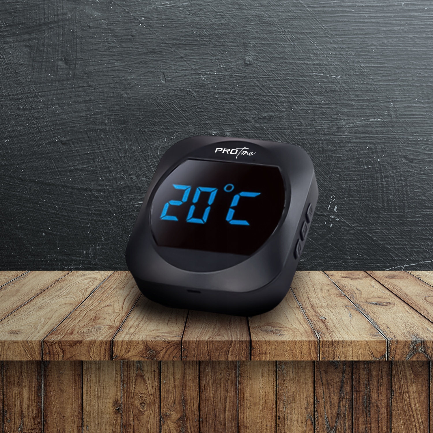 Сбоку ресивера расположены 3 кнопки, отвечающие за отображение температуры, изменение громкости и выбор мелодии.