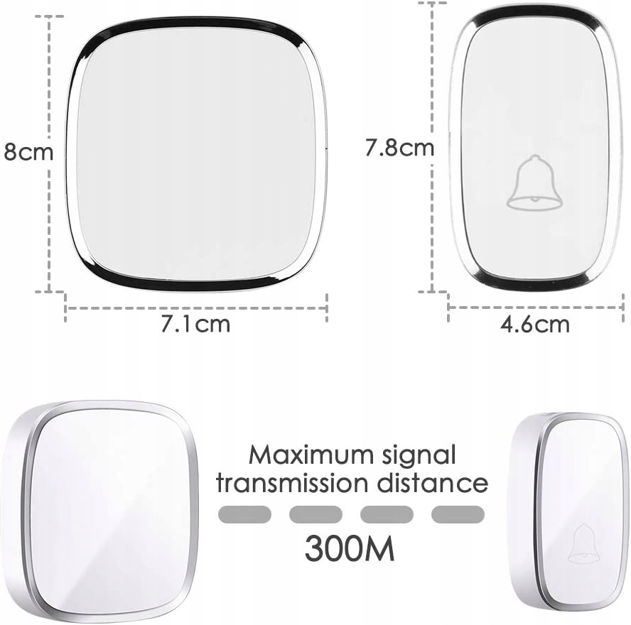 Дуга в и сильный сигнал радиопоставления до 300 метров и 36 различных сигналов, включая многие известные мелодии. Сигнал очень хорошо проникает в препятствия. Этот радио -дверной колокол можно использовать в деревнях офисных офисов офисных комнат или в саду. River Dwiki и Gono с баннером на каждой двери, чтобы выбрать ваш отдельный любимый Dwik Sporód из 36 различных замечательных мелодий. Кроме того, дверной звонок оснащен 4 регулируемыми уровнями гоноци для удовлетворения различных требований. Значительный сигнал для заряженной окружающей среды. В дополнение к колоколу появляется визуальный сигнал. После запуска радиоколжа, который может обеспечить визуальные формы уведомления, это отличная особенность для тех, кто не жил. Анти -резистентные и атмосферные условия дикие технологии IP44 и рабочая температура от 30 ° С до 70 ° С. Колокол дается для использования снаружи. Радиоколж устойчив к самым сложным погодным условиям. Установки просто достаточно, мини -приемник колокола в гнездо и передатчик установки для помощи скважины или клей на разрезанном или дверном раме. Не очень из -за того, готовите ли вы на кухне или горели в саду, этот беспроводной радиоколж во времени сообщит вам об этом. Вы никогда не пропустите гостей