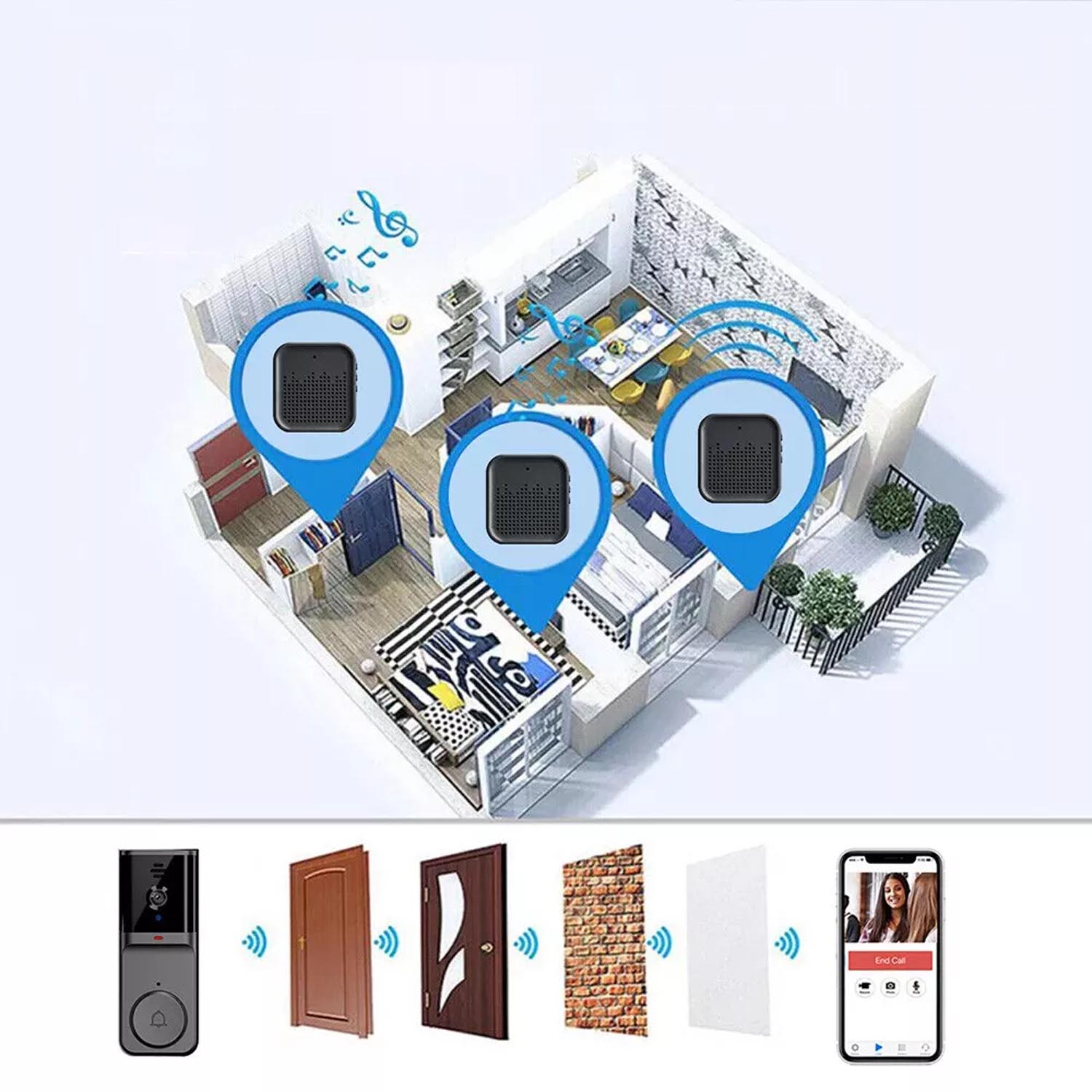 Звук и изображение беспроводного интеллектуального Wi-Fi Door Bell могут быть идеально синхронизированы. Обеспечивает два разговора и видео в режиме реального времени благодаря интеллектуальному снижению шума и адаптивных технологий.