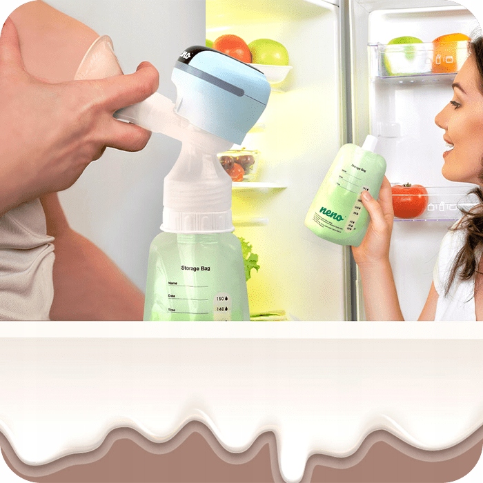 Если у вас слишком много молока, вы можете легко сцедить молоко, заморозить его и использовать позже. Используйте для этой цели пакеты для хранения грудного молока Neno, которые благодаря точному разъему можно прикрепить непосредственно к молокоотсосу Neno, а не к бутылочке.